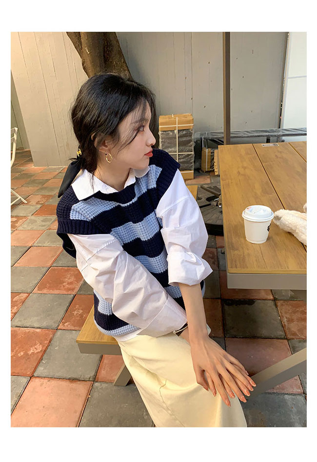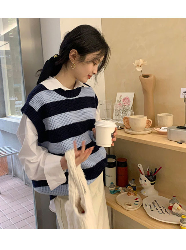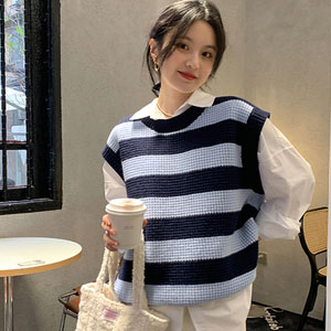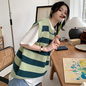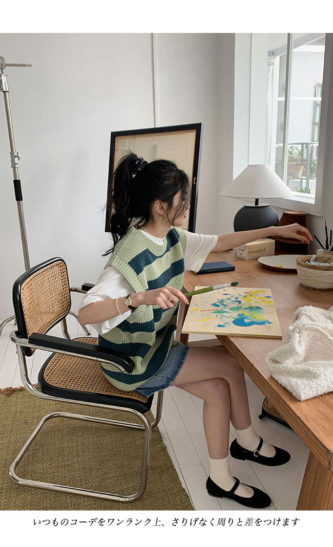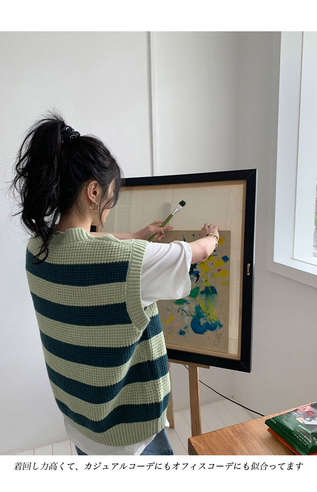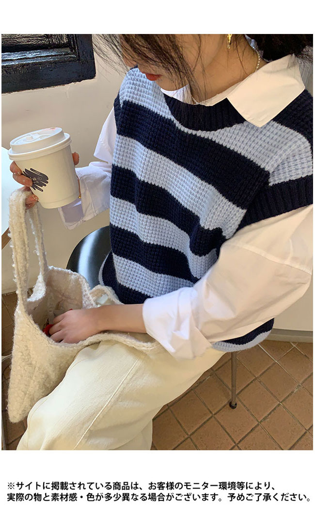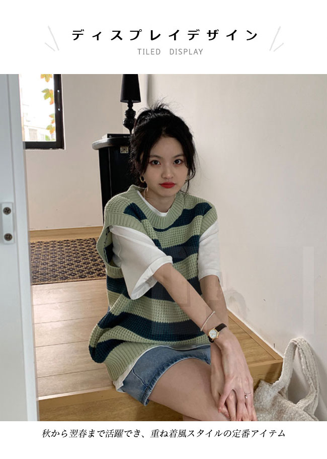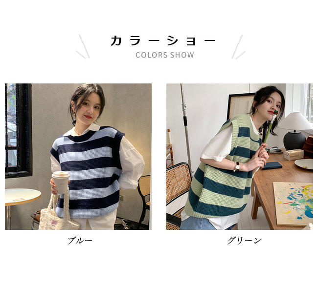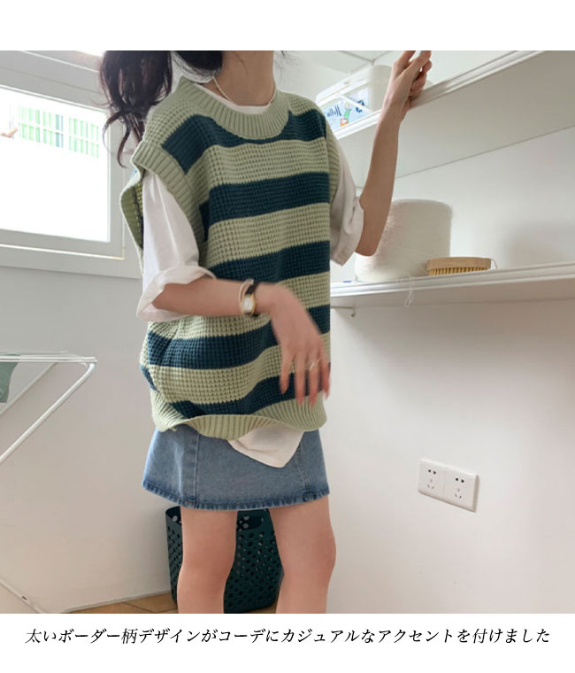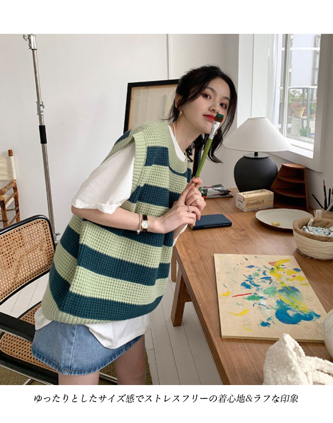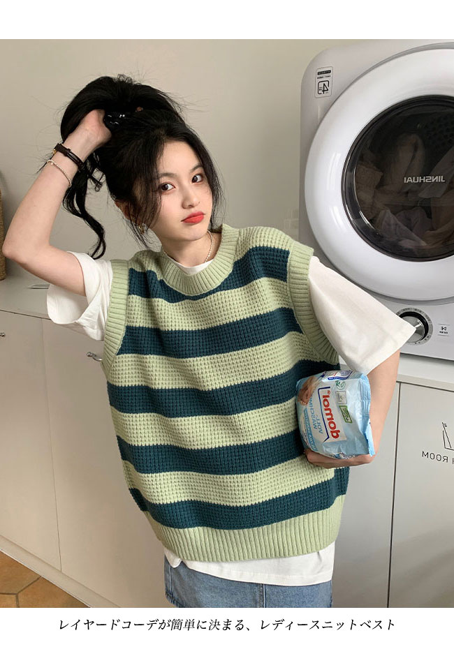 ニットベスト レディース ボーダー柄 ベスト ニット 畦編み ジレ プルーオーバー