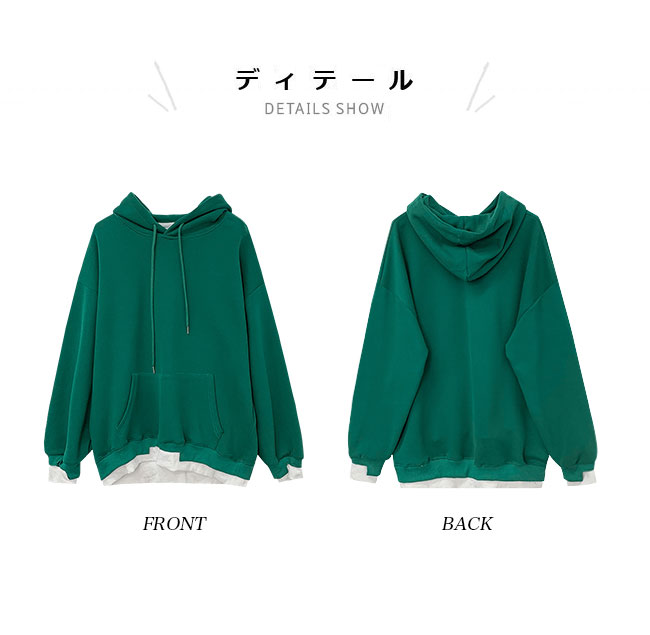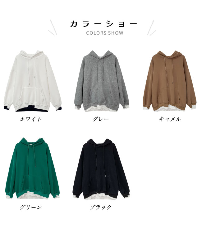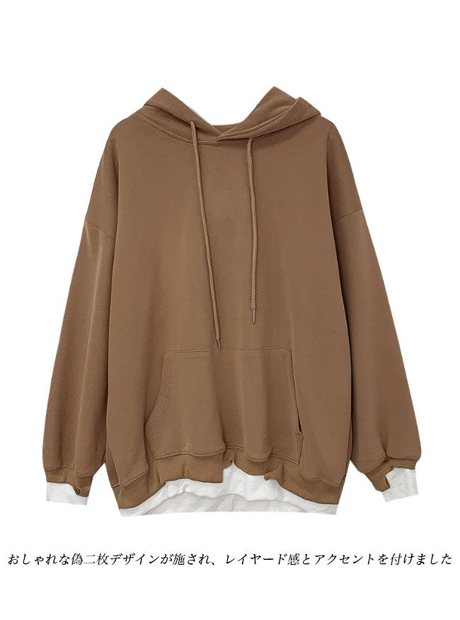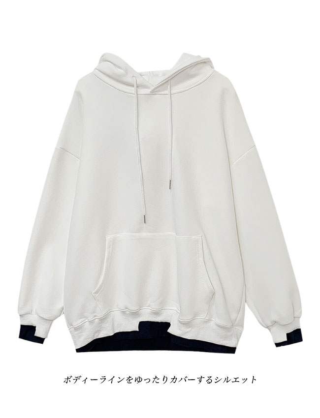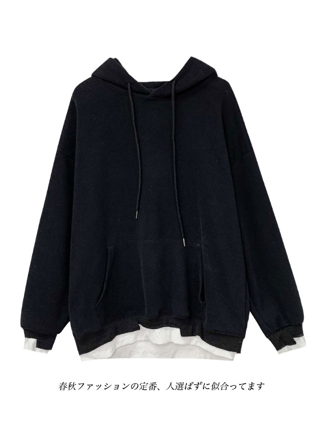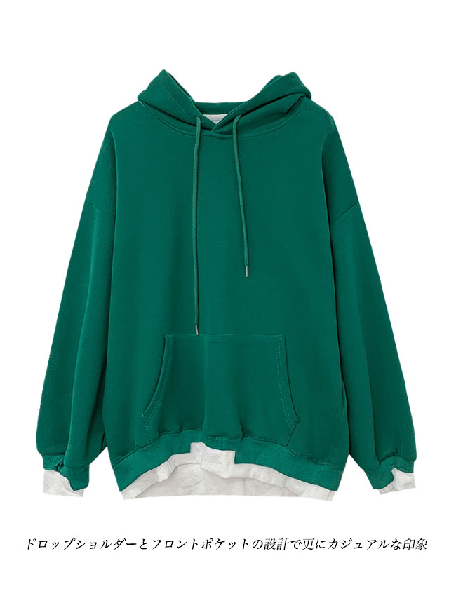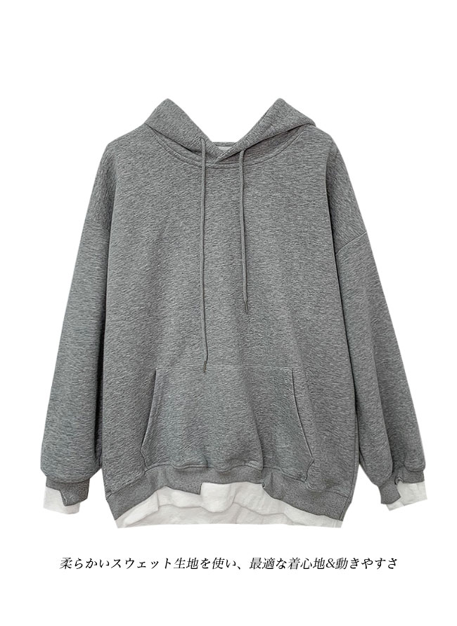 スウェットパーカー フェイクレイヤード レディース パーカー プルーオーバー オーバーサイズ スウェット プルパーカー 偽二枚 トップス ドロップショルダー フード付き トレーナー お洒落 スウェットトレーナー ホワイト グレー ブラック
