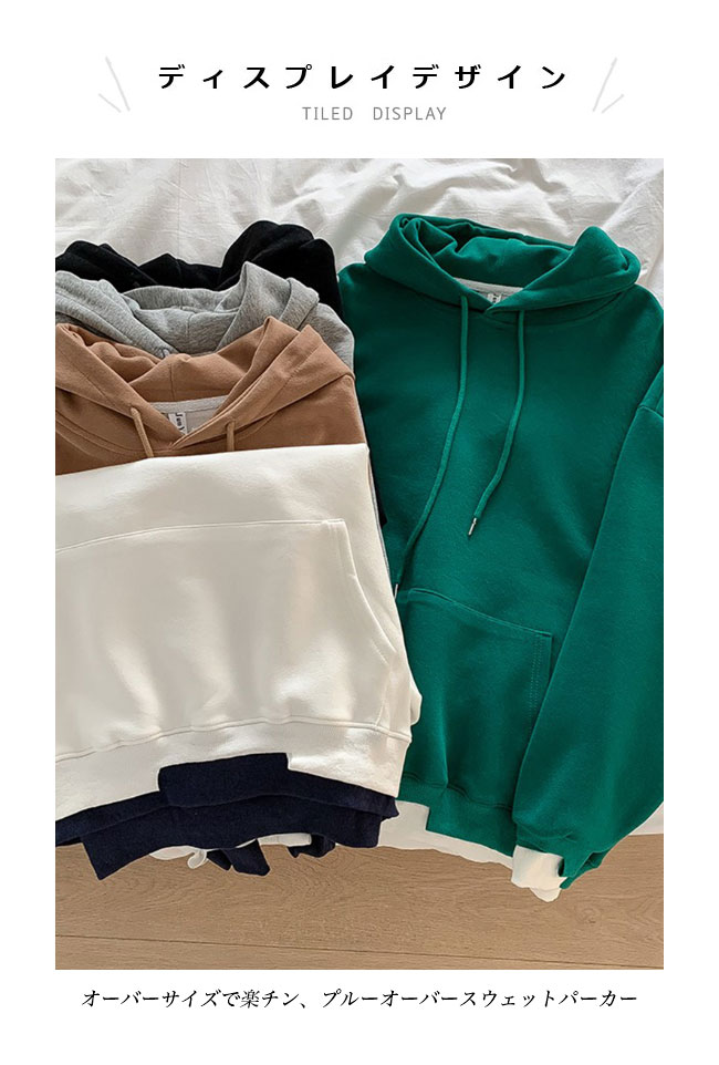 オーバーサイズで楽チン、プルーオーバースウェットパーカー