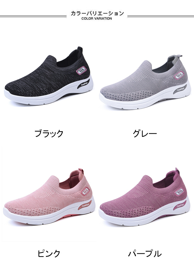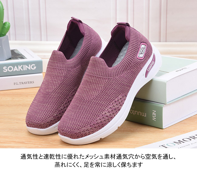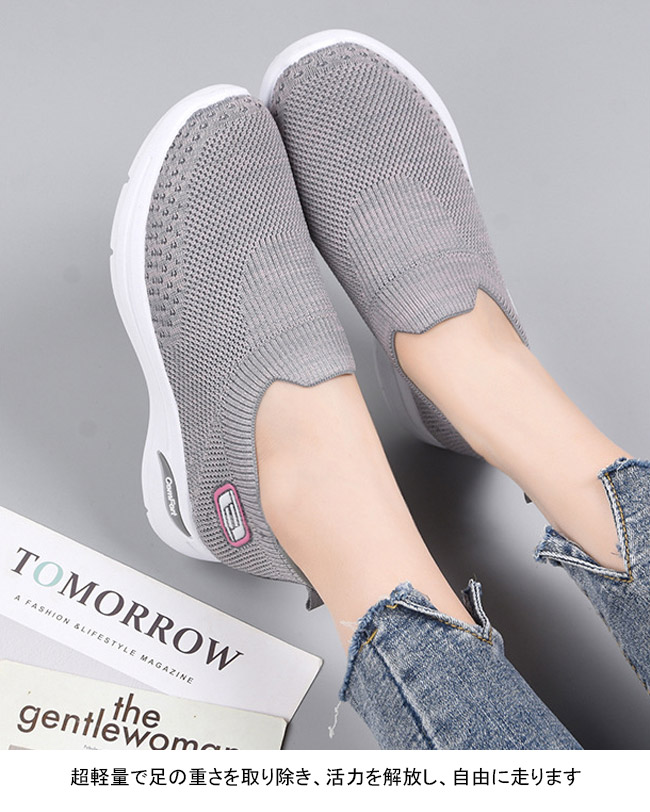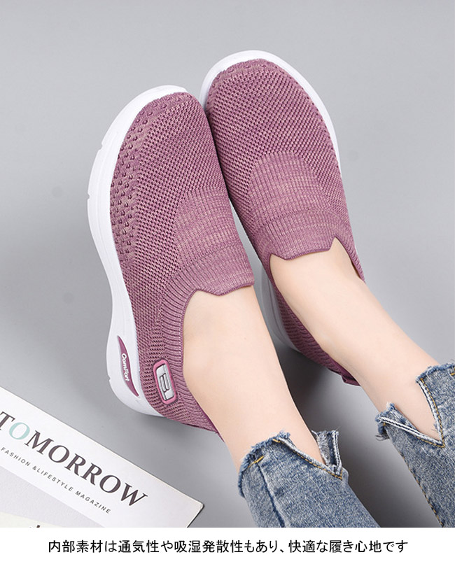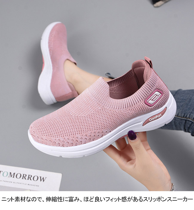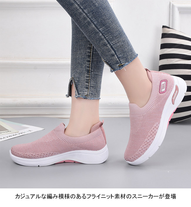 スニーカー シューズ レディース ニット フライニット ウォーキング 防滑 防摩耗 蒸れない 伸縮性 メッシュ ナースシューズ カジュアル おしゃれ 快適 フィット 柔らかい 軽量 スリッポン ランニング ママシューズ