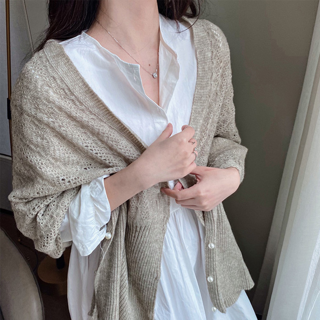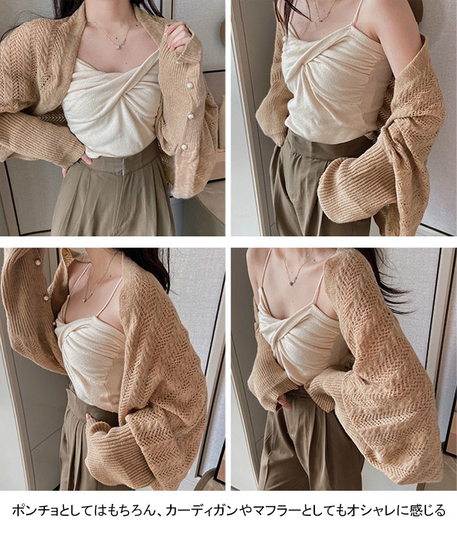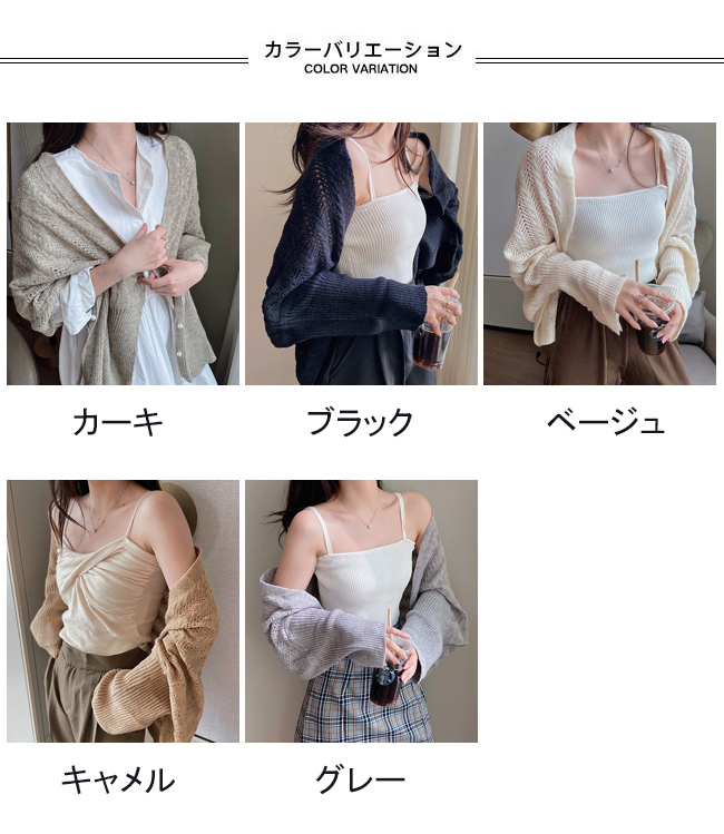 カーディガン レディース ニット ショール ボレロ トップス 羽織り ボレロ カーディガン 透かし編み パール ニット 可愛い お洒落 無地 大人カジュアル ライトアウター 冷房対策 長袖 春 秋 韓国ファッション かわいい おしゃれ 。 カーキ ブラック ベージュ キャメル グレー