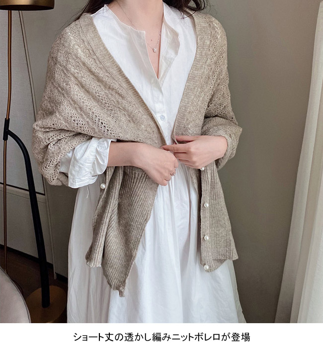 ショート丈の透かし編みニットボレロが登場!
