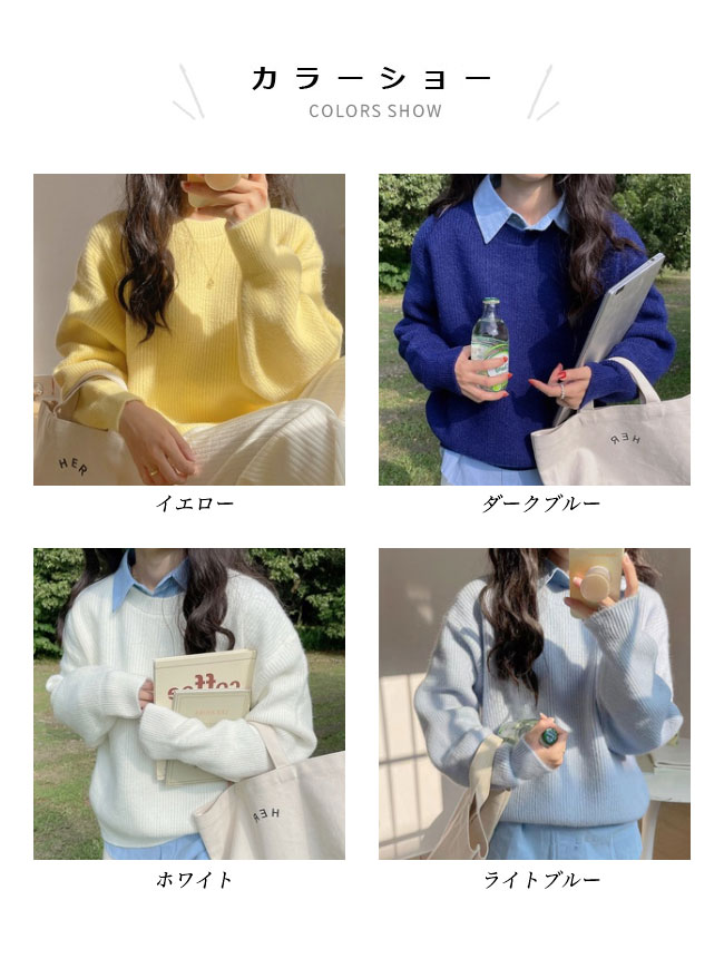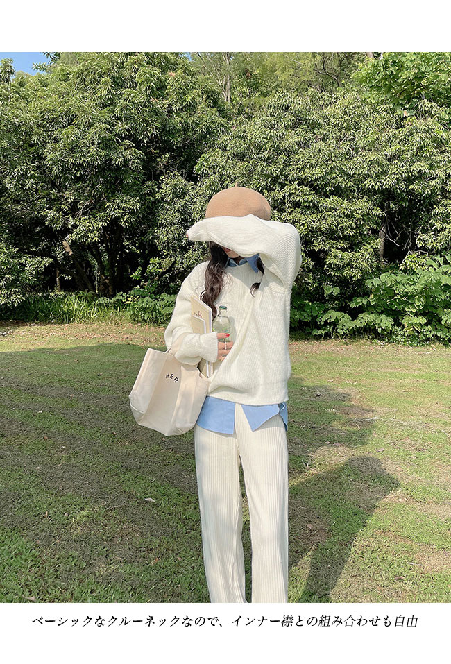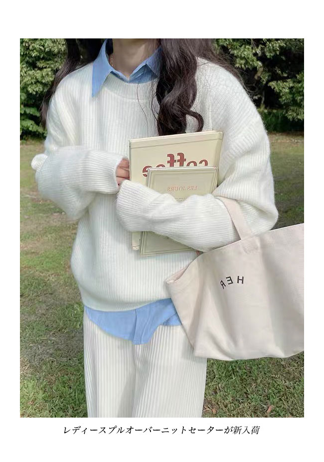 ニットセーター 厚手 レディース セーター オーバーサイズ クルーネック 畦編み 冬 秋 ニット トップス 長袖 ラウンドネック レディースセーター ゆったり オフィス 厚手ニット ニットトップス レディースニット 丸首 シンプル ホワイト ブルー