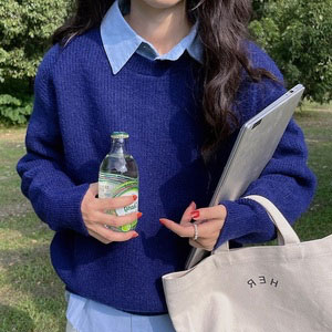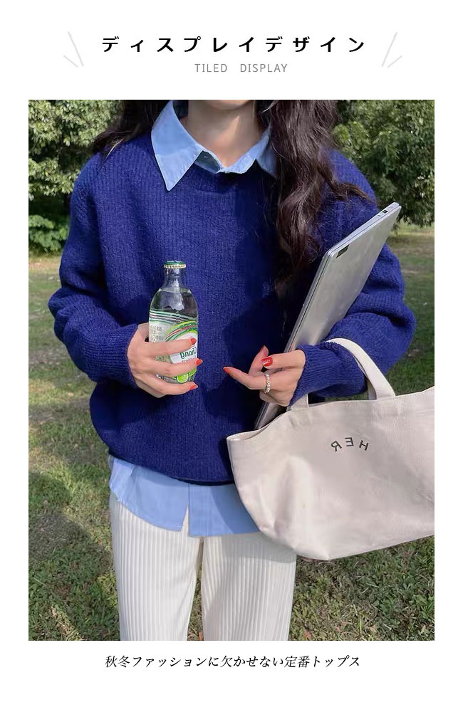 ベーシックなクルーネックなので、インナー襟との組み合わせも自由