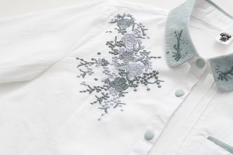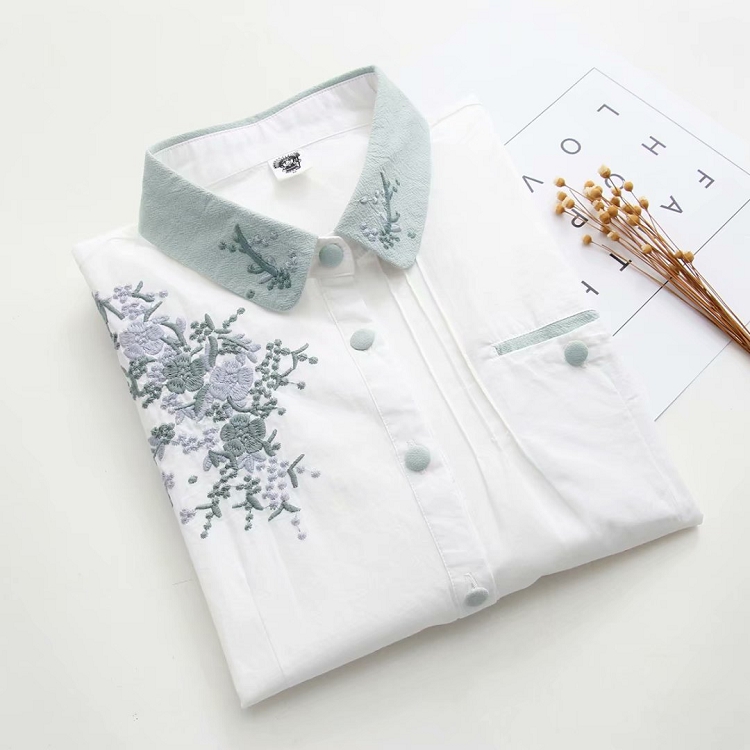 シャツ ブラウス 花柄 刺繍 長袖 ナチュラル レディース