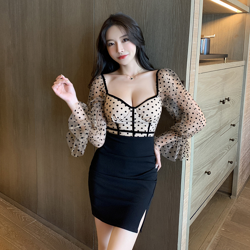 タイトワンピース レディース 長袖 裾スリット 大きく胸元開き キャバ ドレス キャバドレス ミニ キャバクラ タイト キャバワンピース 可愛い セクシー
