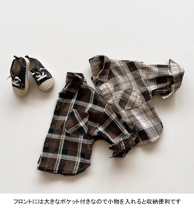 子供用、チェック柄のライトアウター 長袖シャツが新入荷
