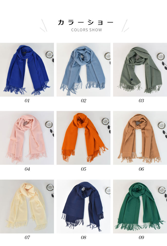 大判サイズなので、肩にかけても、頭や首に巻いて、いろんな使い方が楽しめます