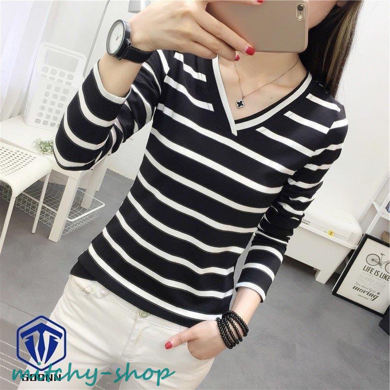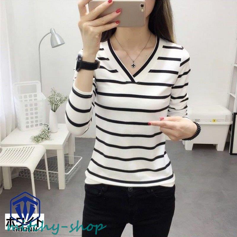 長袖カットソー レディース 婦人服 トップス ロングTシャツ ロンT Vネック ボーダー柄 かわいい カジュアル デイ普段使い おしゃれ 縞模様