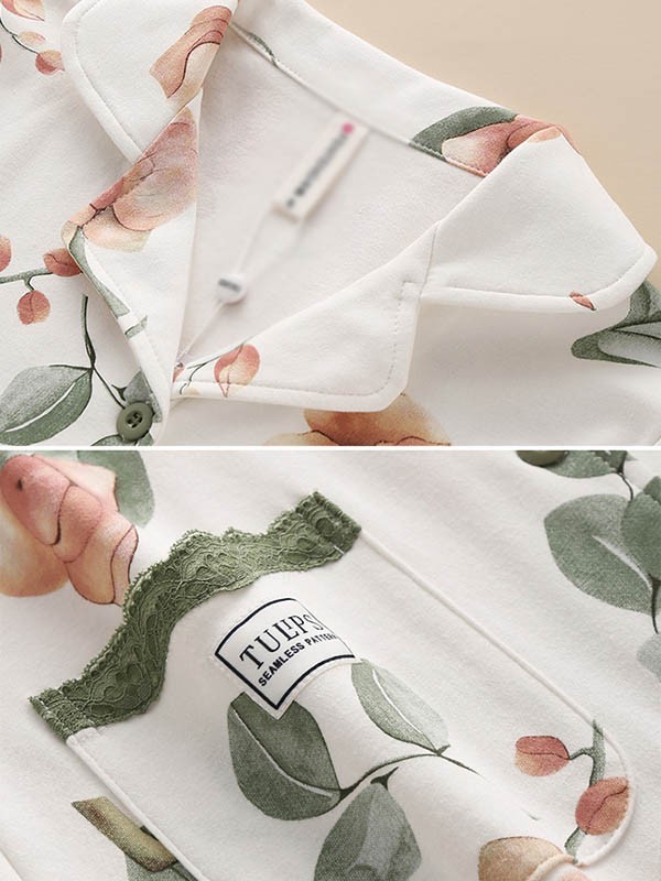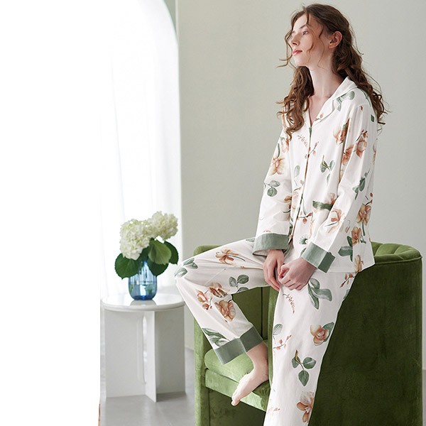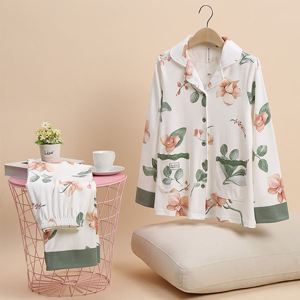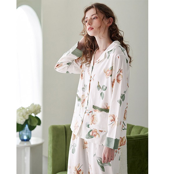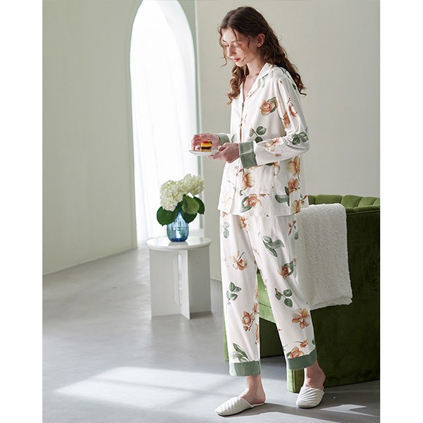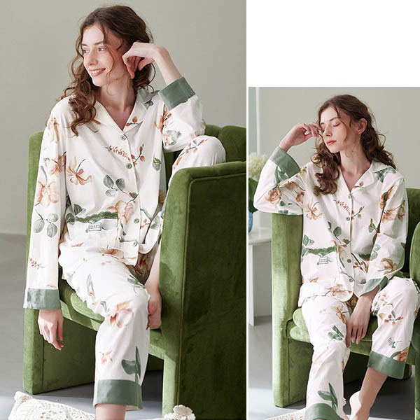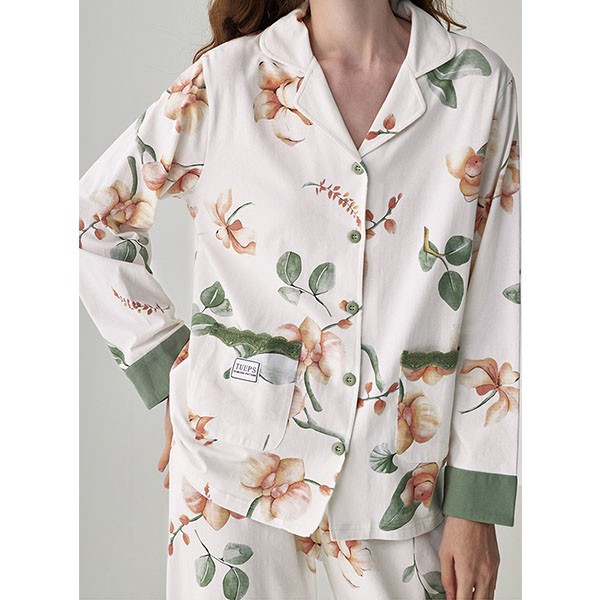 パジャマ レディース 春秋 きれいめ 長袖 上下セット 花柄 ルームウェア 可愛い ゆったり 大人 部屋着 寝巻き かわいい おしゃれ やわらか 体型カバー 前開き 襟付き ポケット付き コットン ギフト プレゼント S M L XL 2XL 3XL C9X0