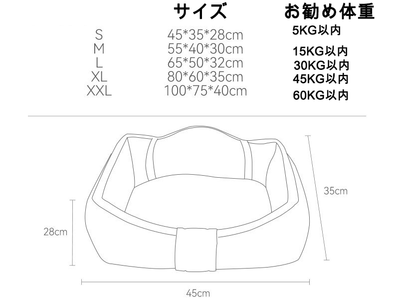 サイズ S(お勧め体重5KG以内のペット) M(お勧め体重15KG以内のペット)(+980円) L(お勧め体重30KG以内のペット)(+1 980円) XL(お勧め体重