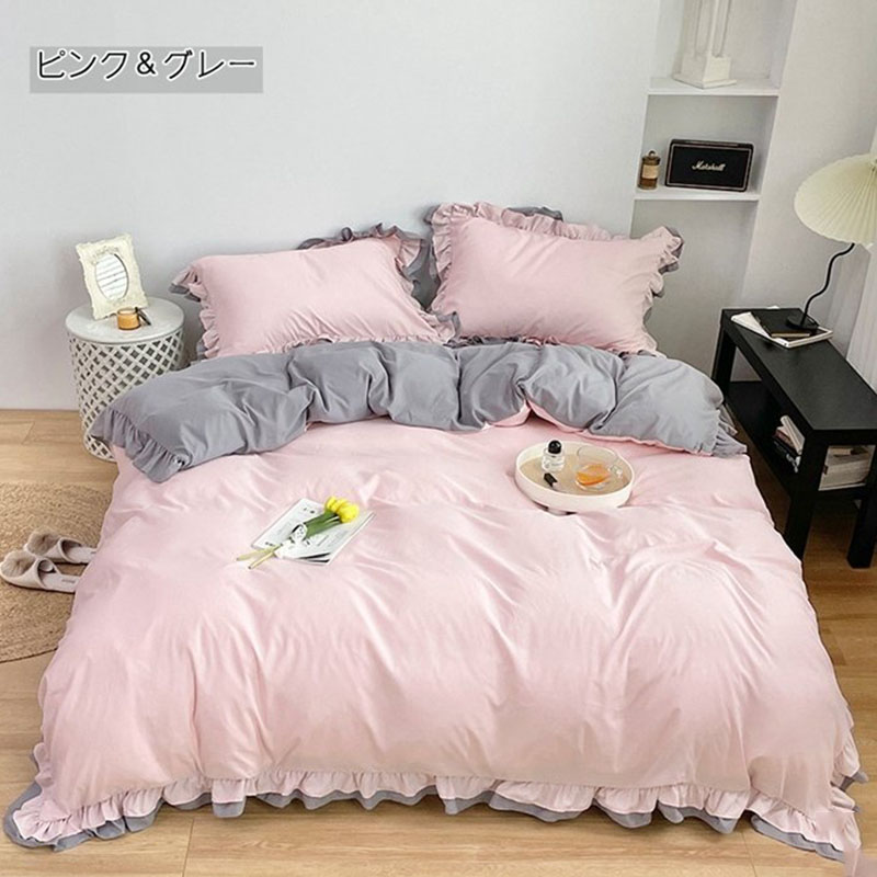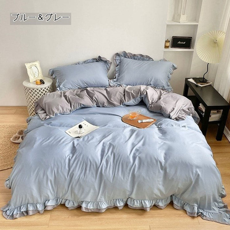 布団カバー 3点セット シングル セット セミダブル 4点セット シーツ ベット フリル付き ピーチスキン加工 可愛い 掛け布団カバー プレゼント ボックスシーツ おしゃれ 北欧 丸洗いOK