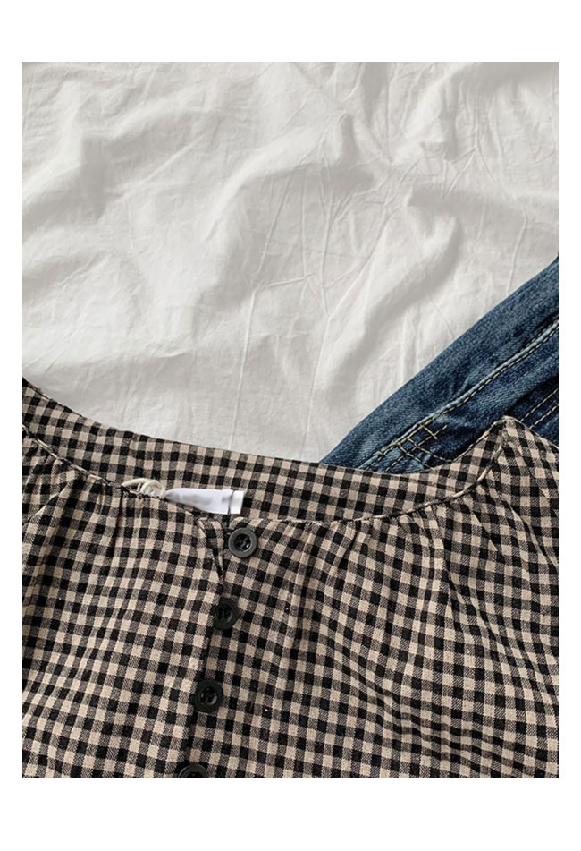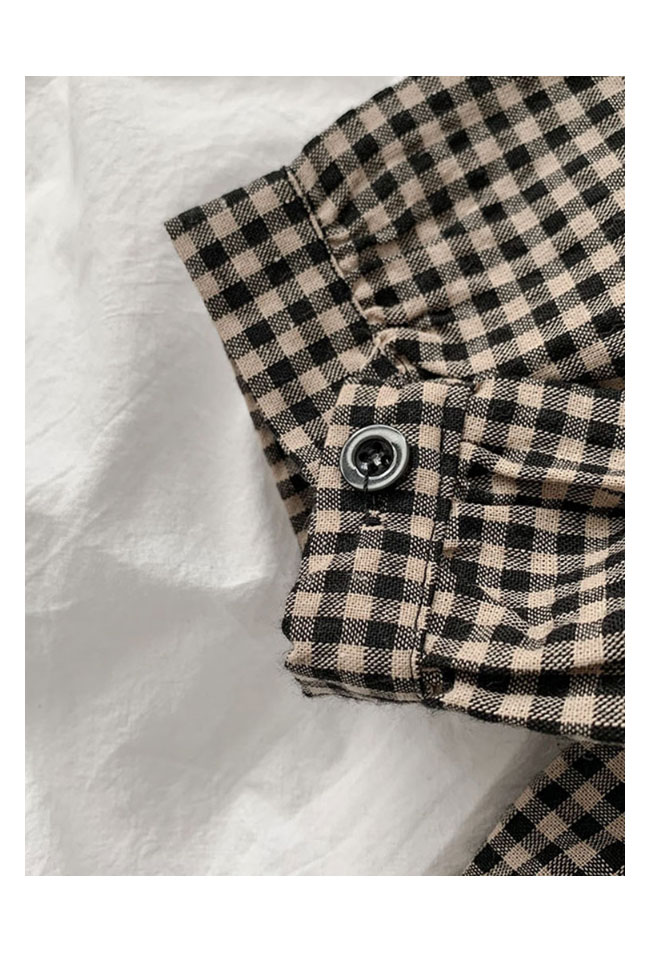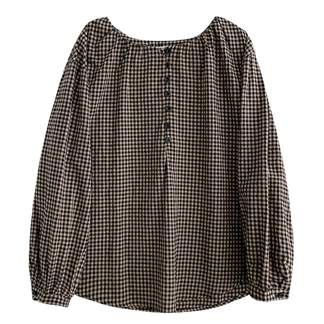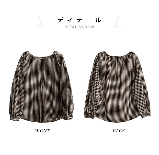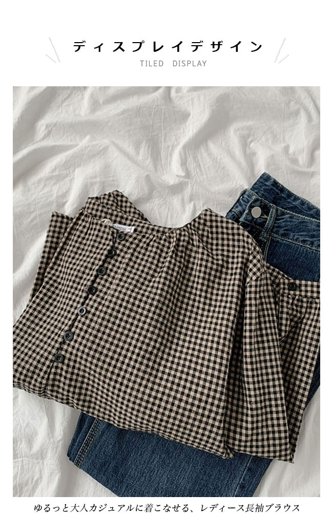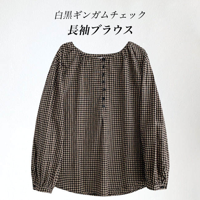 ブラウス 長袖 プルーオーバー レディース ギャザーブラウス 春秋 長袖ブラウス ギンガムチェック レトロ チェック柄ブラウス 綿混 ゆったり 体型カバー トップス 薄手 コットンブラウス 白黒チェック