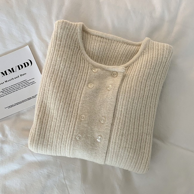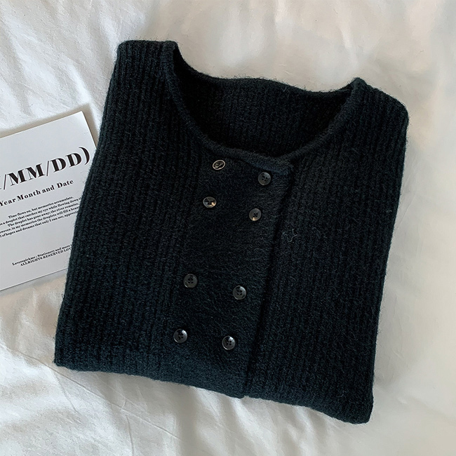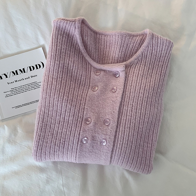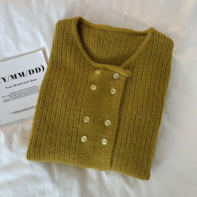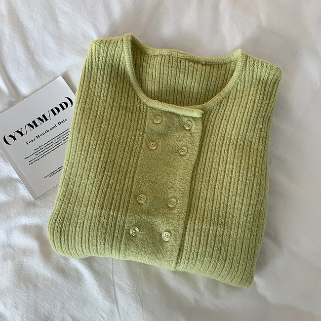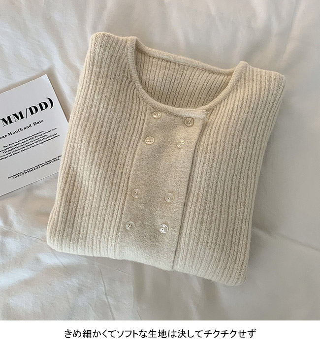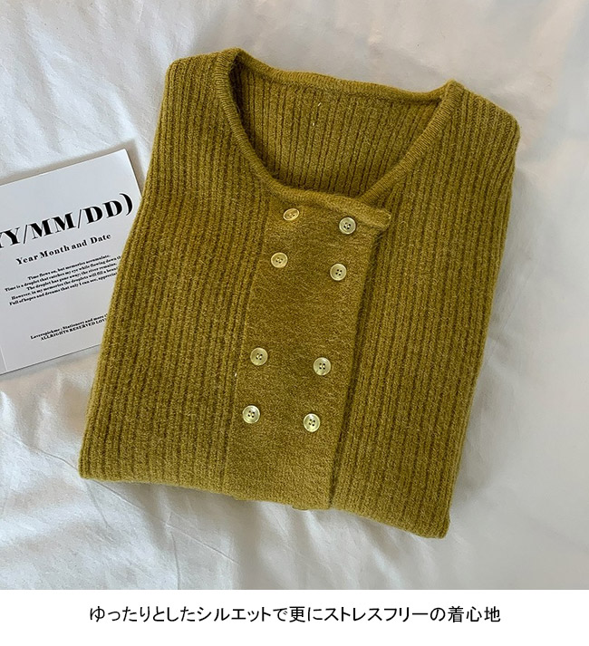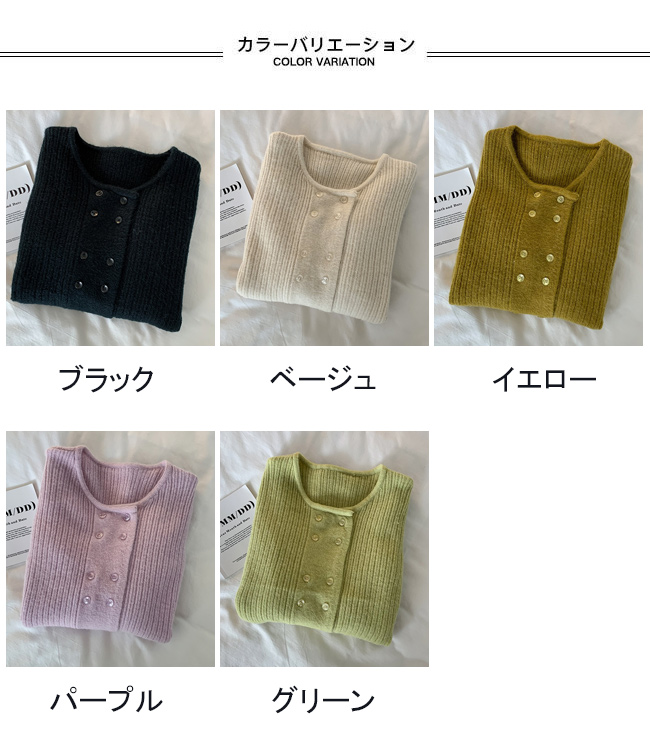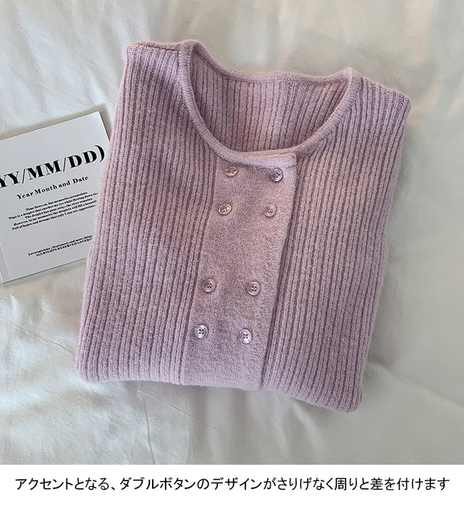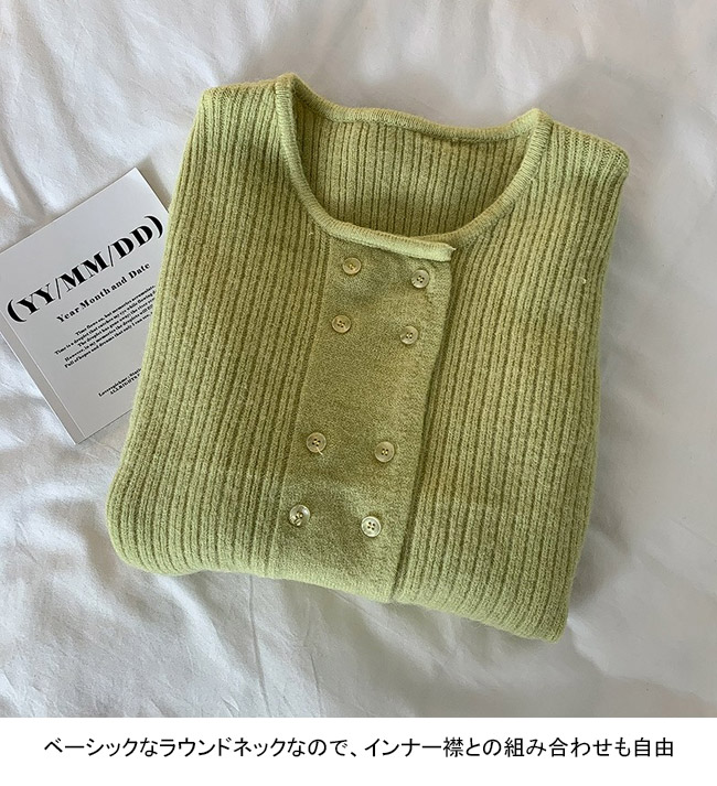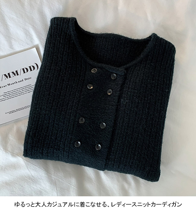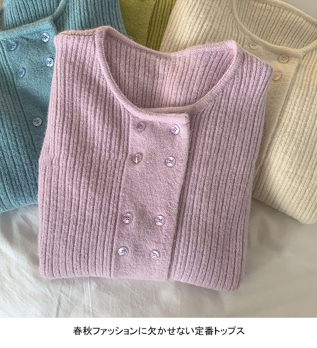 カーディガン ダブルボタン レディース ニットカーディガン 秋 ショートカーディガン 春 ボタンカーディガン クルーネック オフィス ニット 前開き トップス アウター 長袖 ニットコーディガン ブラック ベージュ イエロー パープル グリーン