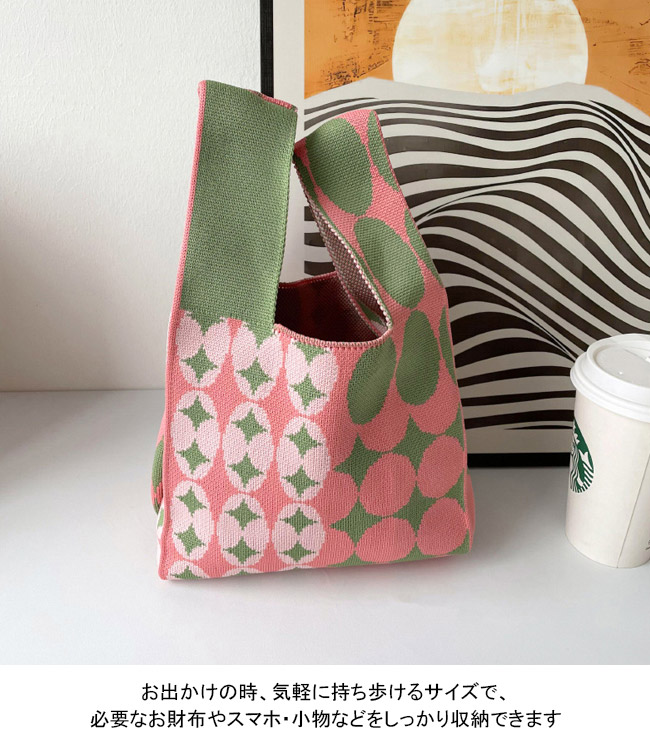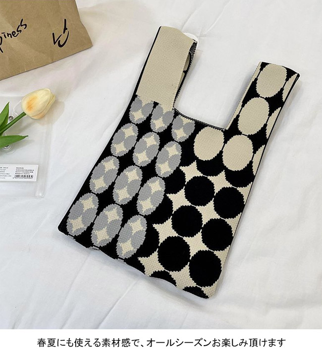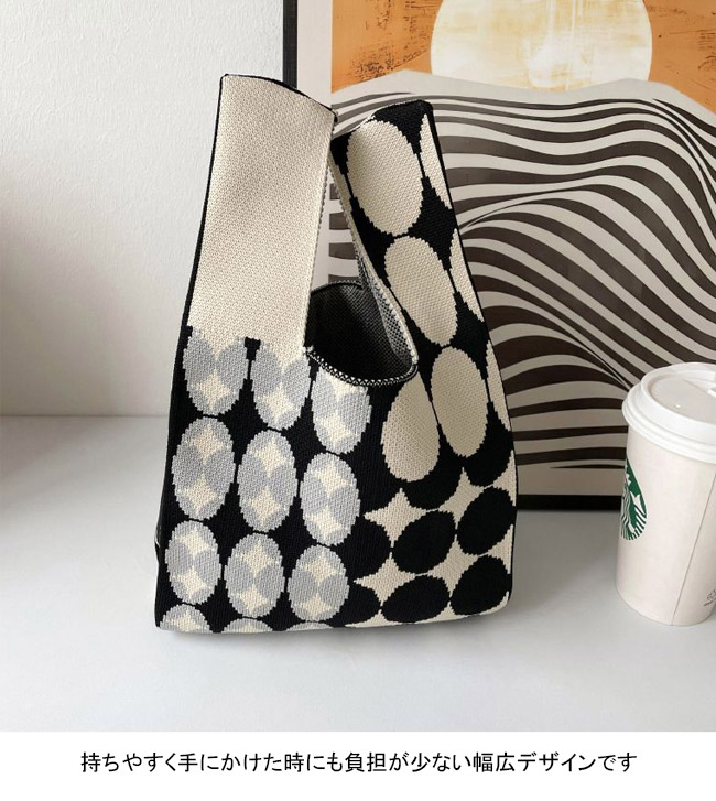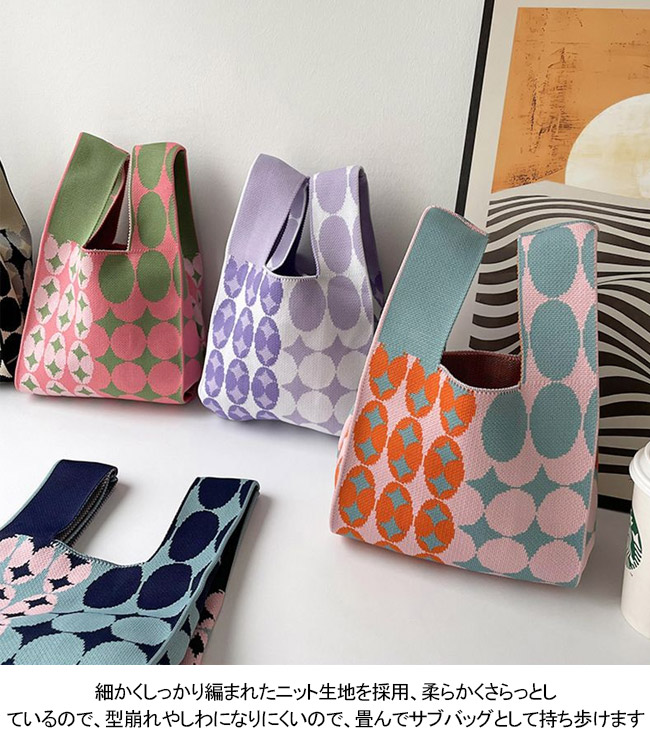 トートバッグ レディース 手提げバッグ サブバッグ ハンドバッグ 大容量 手提げやすい 軽量 ニット ハード 水玉 通勤 通学 買物 絵描き おしゃれ 可愛い