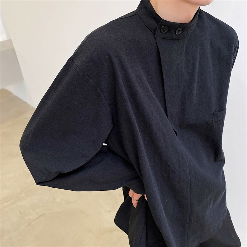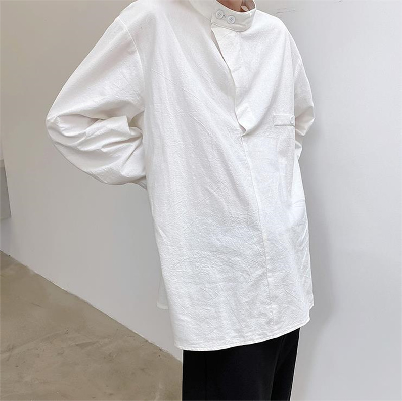 メンズ シャツ カジュアルシャツ 長袖 ワイシャツ プルオーバー スタント春秋 クラブ 無地 男子トップス 発表会 ブラック 公演 ダンスウェア ホワイト