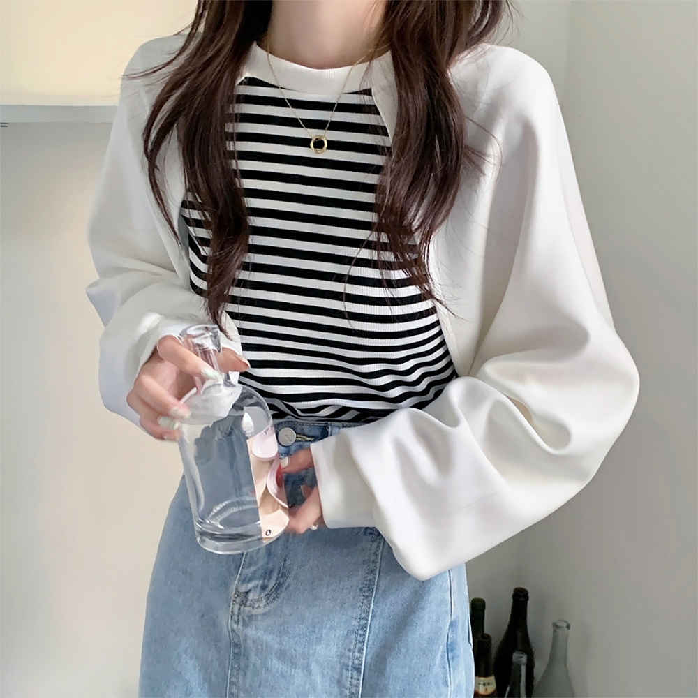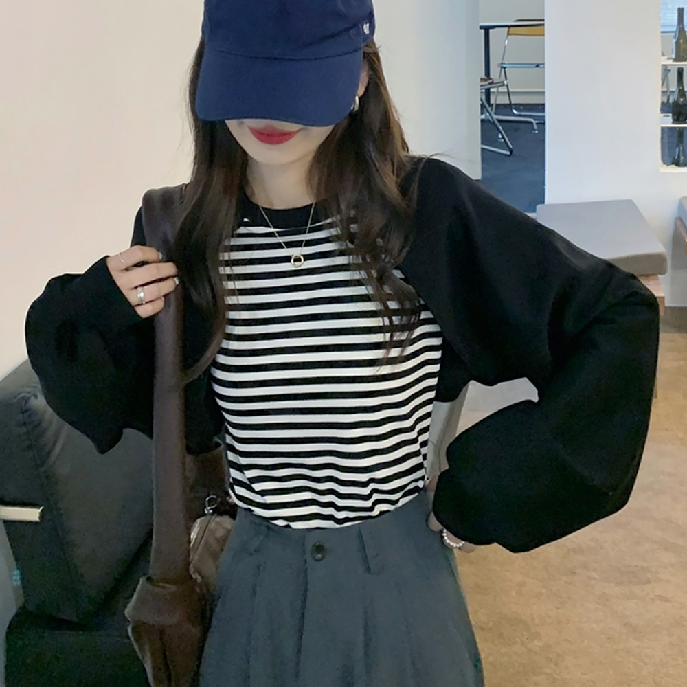 トレーナー ボーダー ボリューム袖 カットソー 着やせ ゆったり 体型カバー ストリート おしゃれ 大人女子 黒白