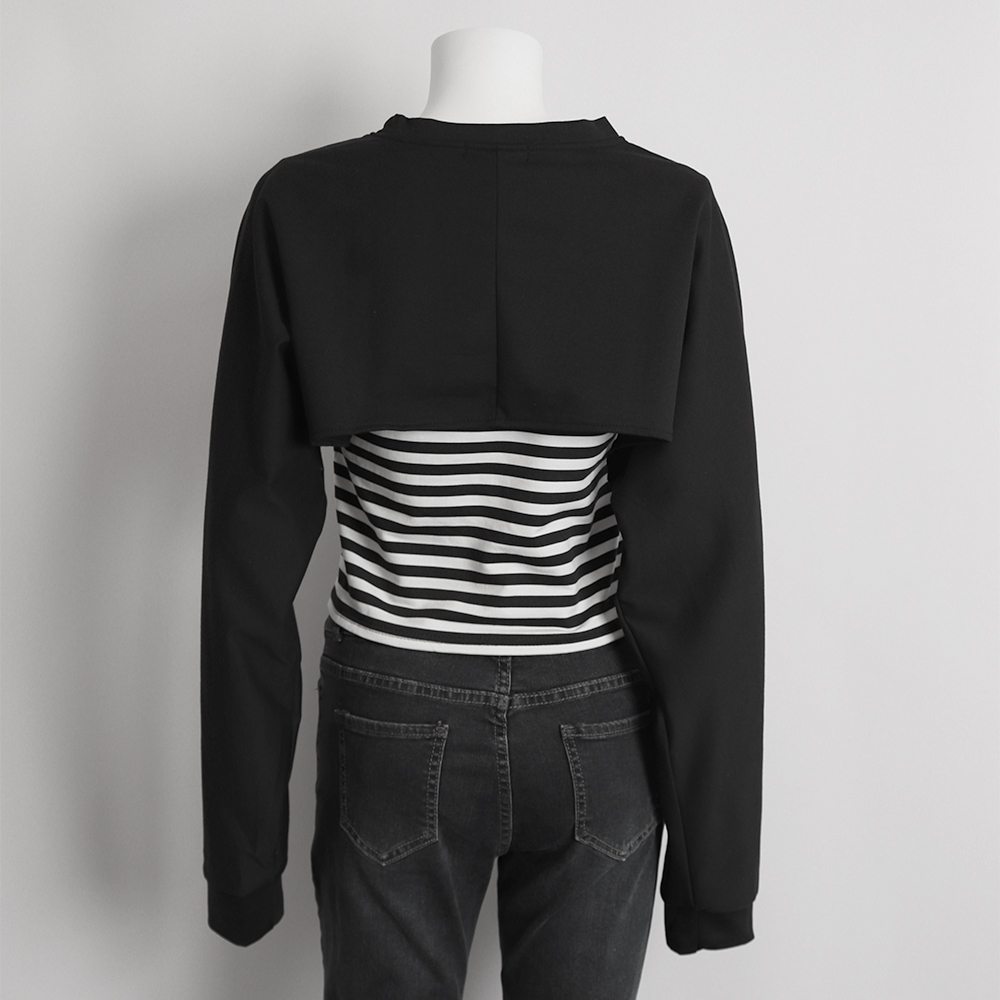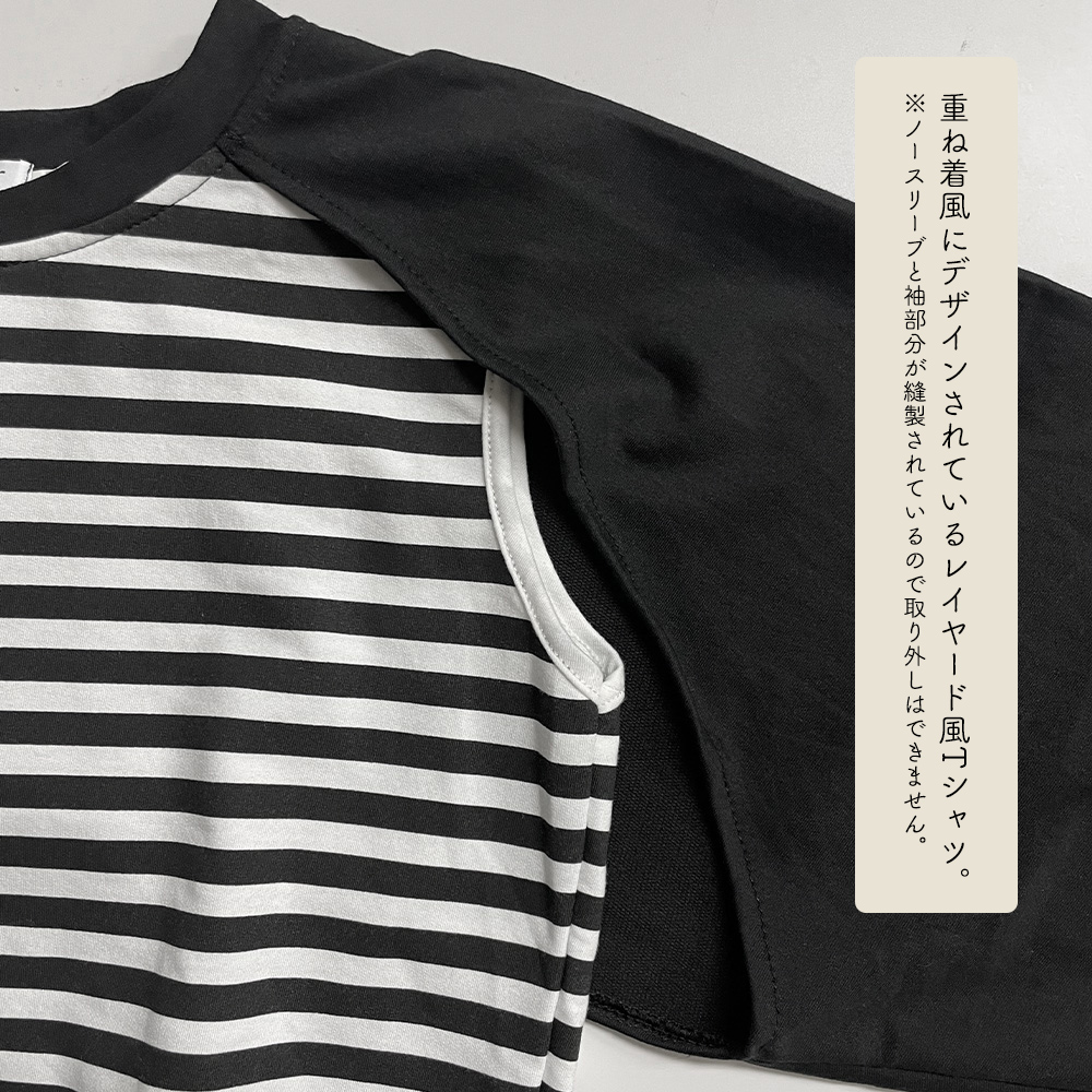 シンプルだけどお洒落見えするレイヤード風スウェットトップスです。