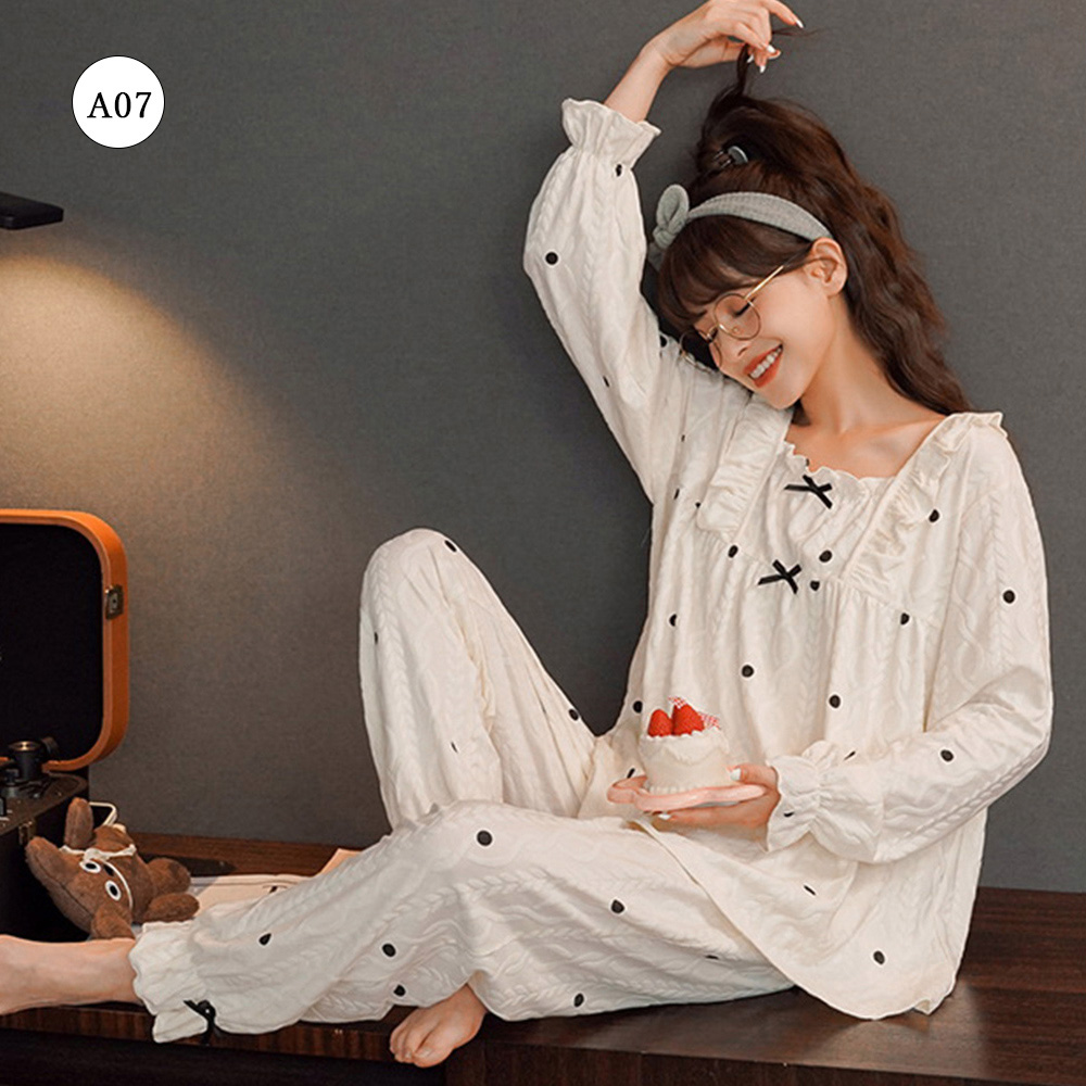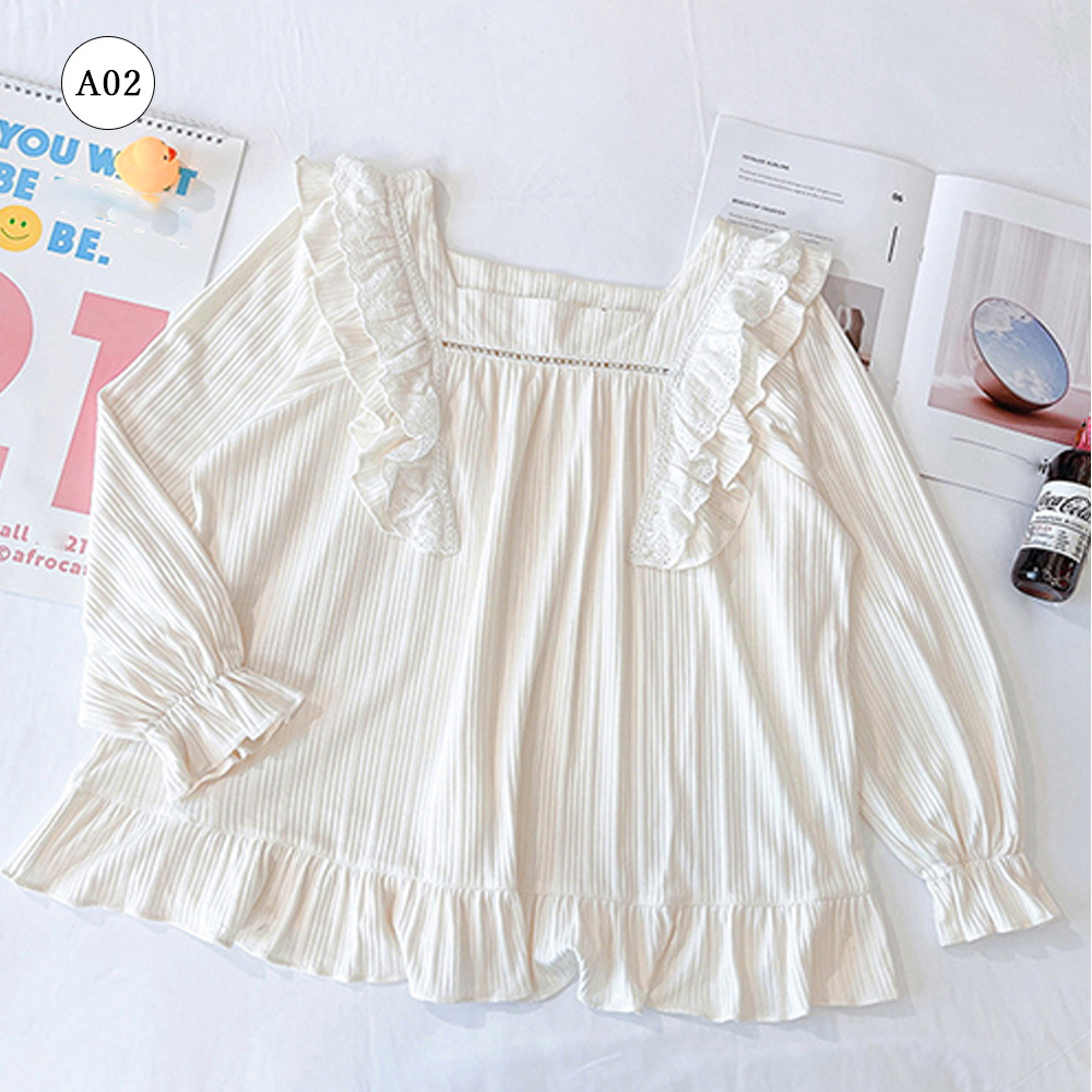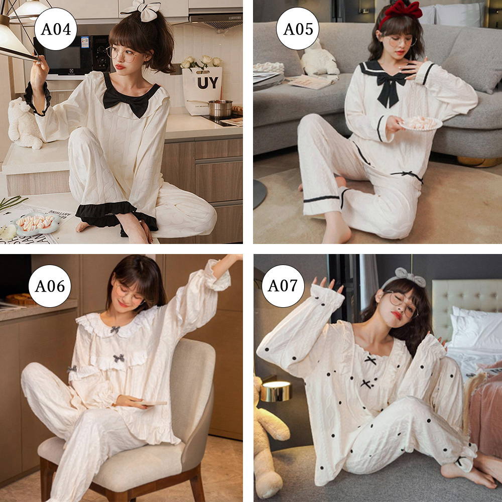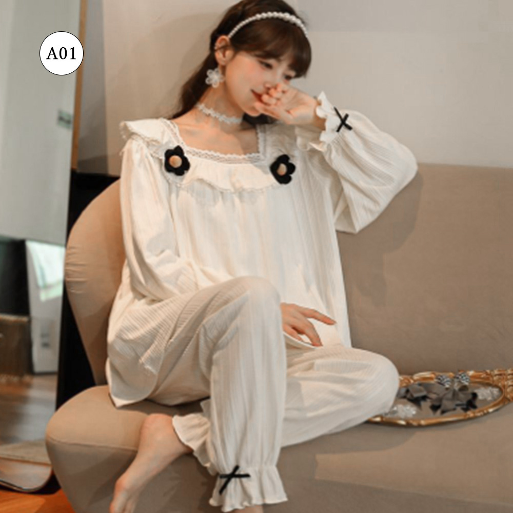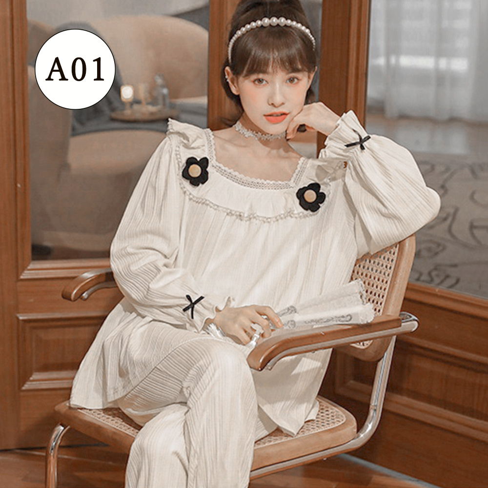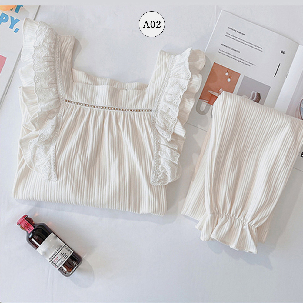 長袖 レディース 部屋着セットアップ 韓国ファッション 白お姫系寝巻き フリル裾長袖 長ズボン 大人 ナイトウェア春秋冬