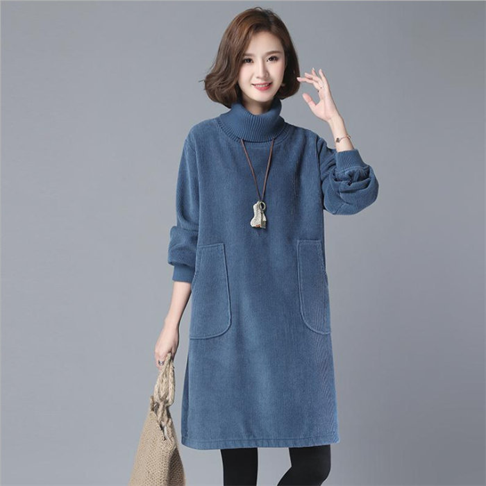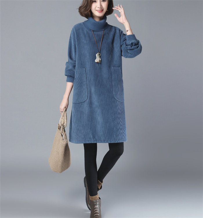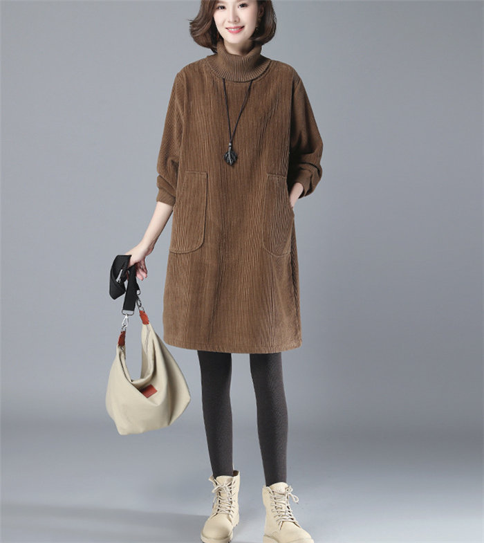 裏起毛ワンピース ハイネックワンピース タートルネック 長袖 体型カバー レディース チュニック 着痩せ コーデュロイ 大きいサイズ リブニット 秋 冬 30代 40代 50代 上品 きれいめ 着回し 重ね着 ポイント消化 秋 冬 ハイネック 定番 オシャレ 裏起毛 暖かい