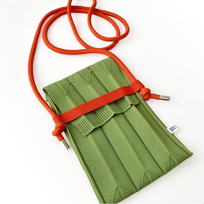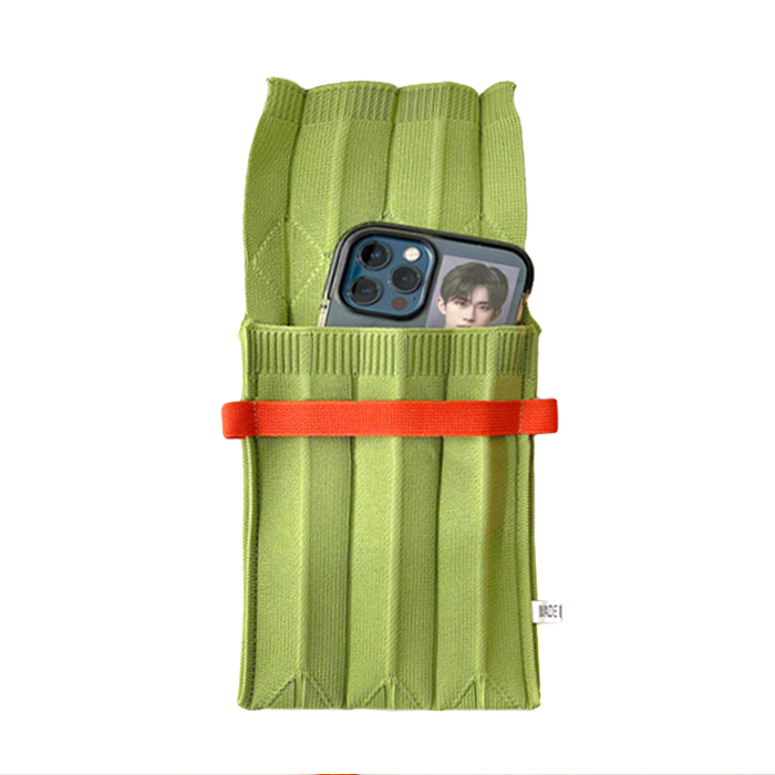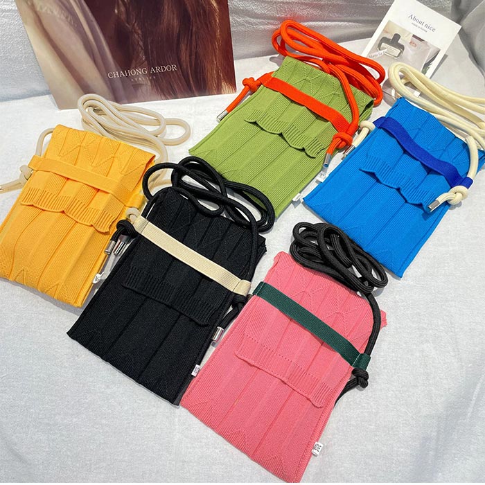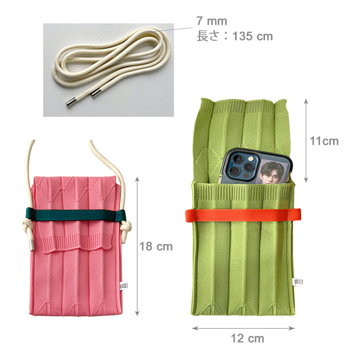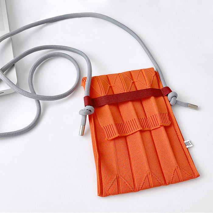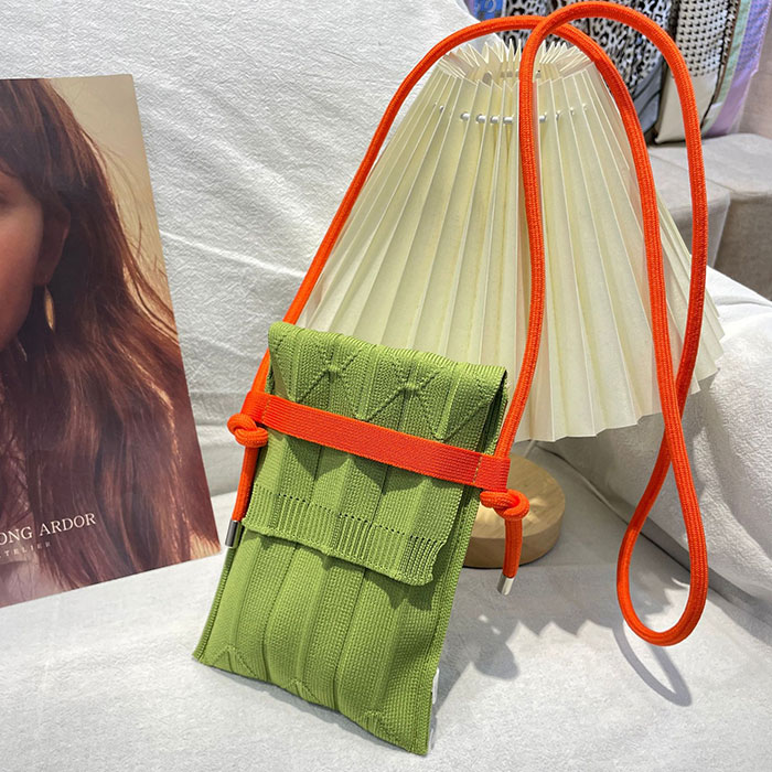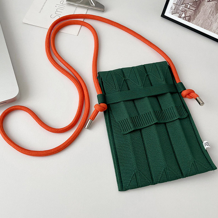 鮮やかなが目を引くニット素材のプツ スマホポーチ