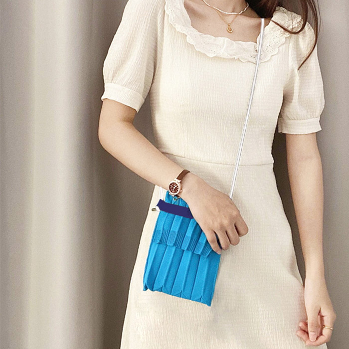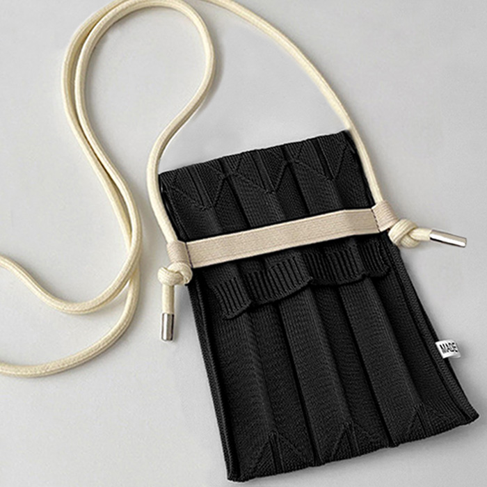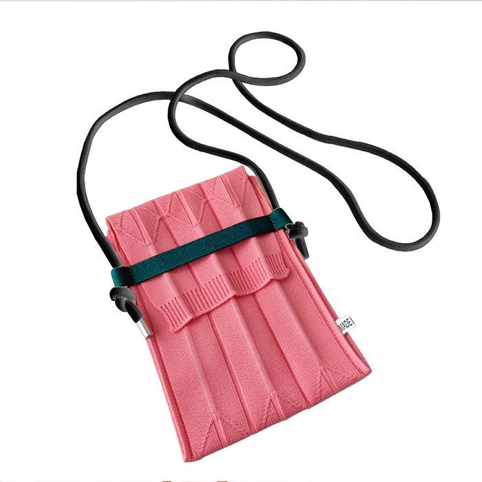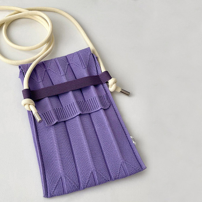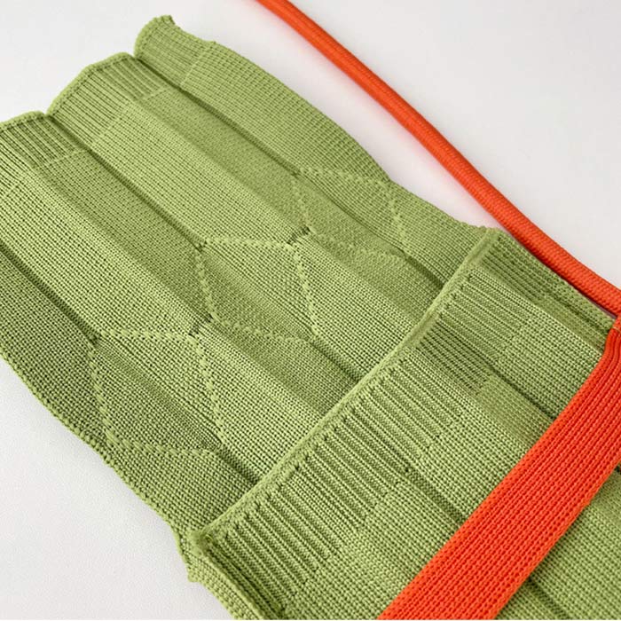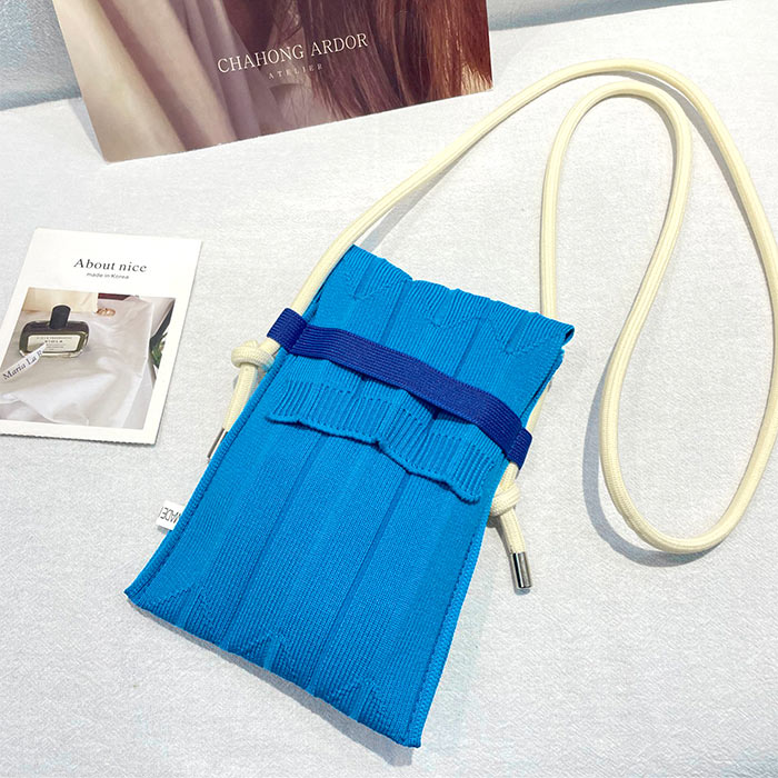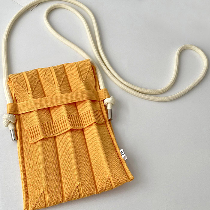 鮮やかなが目を引くニット素材のプツ スマホポーチ