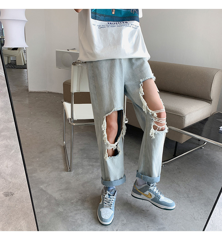 クダメージ デニム パンツ ジーンズ 韓国 ストリート HIPHOP Y2K K-POP レディース ダンス衣装 原宿系