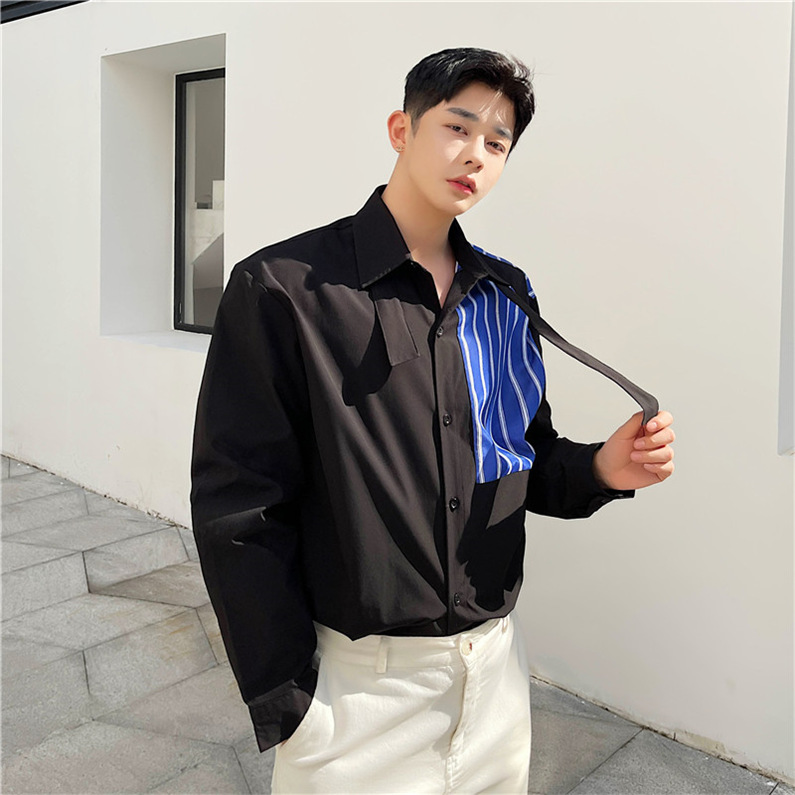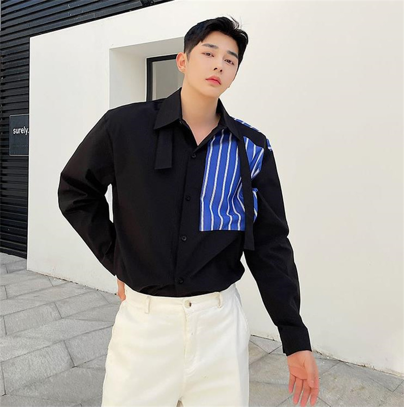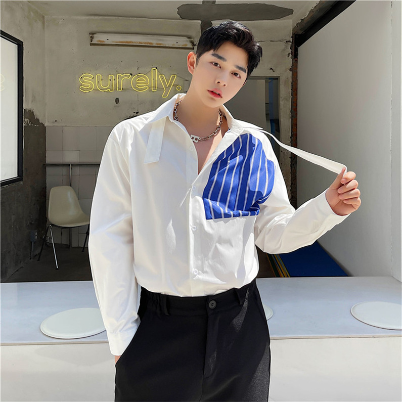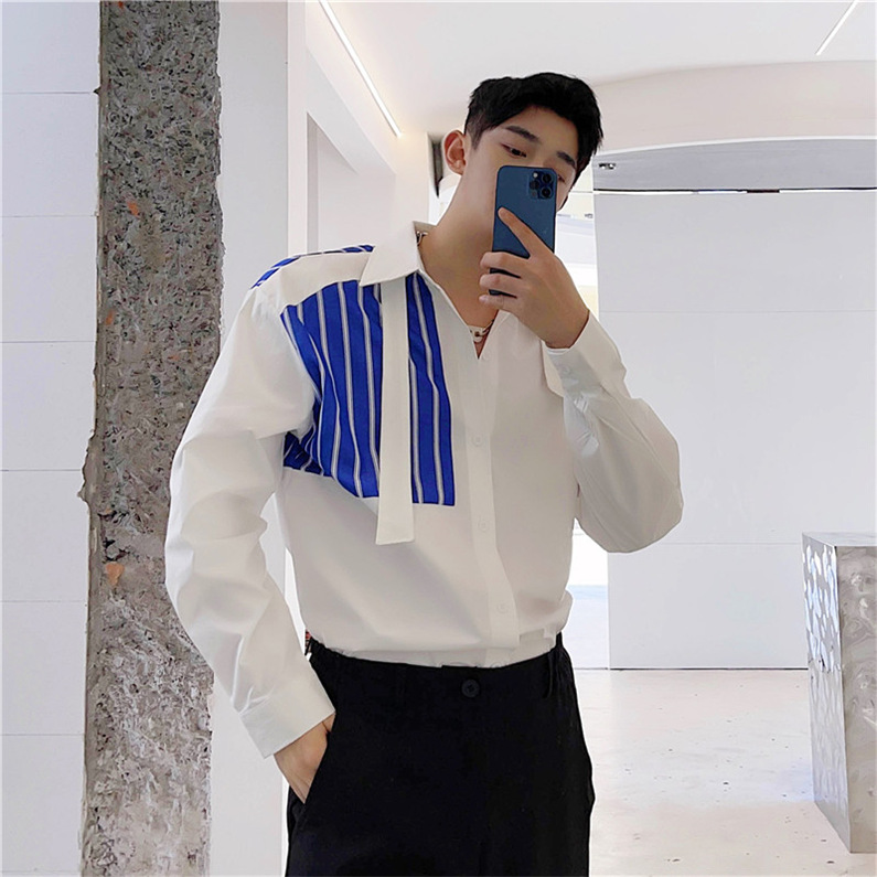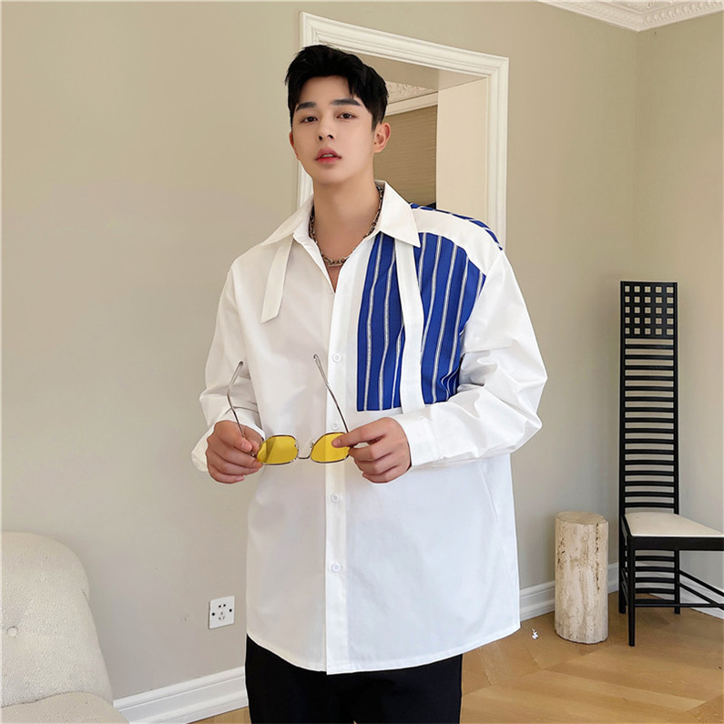 メンズ シャツ カジュアルシャツ 長袖 白黒 上着 発表会 クラブ 春秋 オシャレ 公演 ダンスウェア ボタン留め ワイシャツ ライブ 男子トップス ストライプ