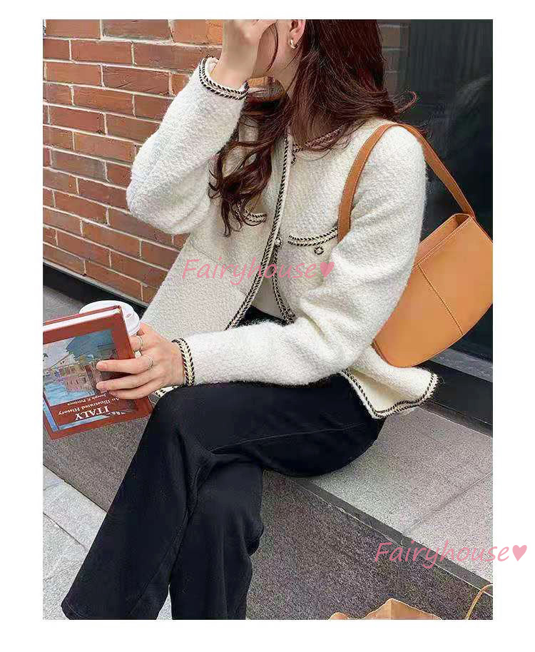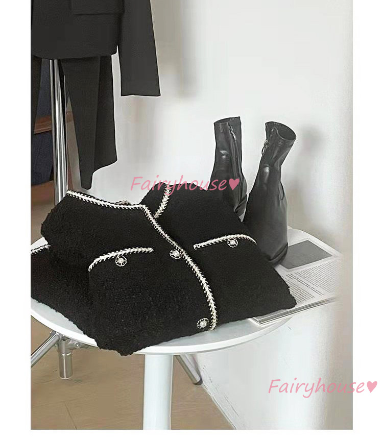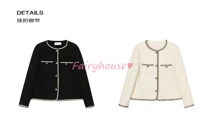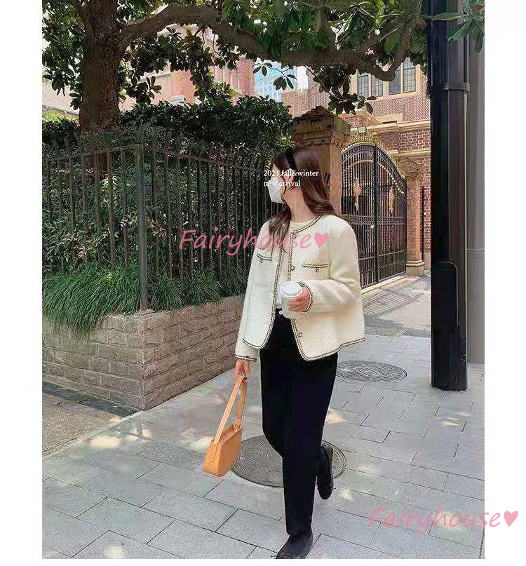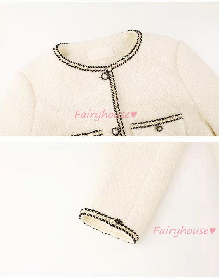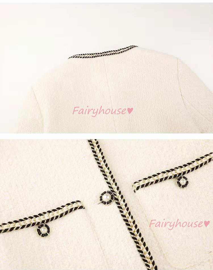 連携キーワード :ツイードジャケット レディース 40代 長袖ノーカラージャケット 黒ショット丈ツイードコート 春コートアウター 秋服 大人韓国風 通勤OL オフィス 結婚式 入学式 卒業式 30代 50代