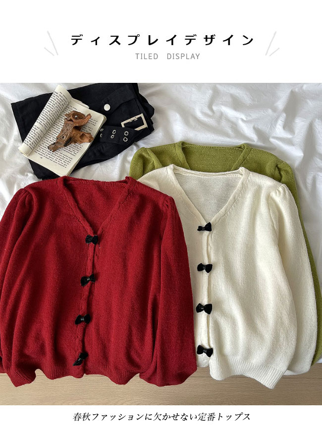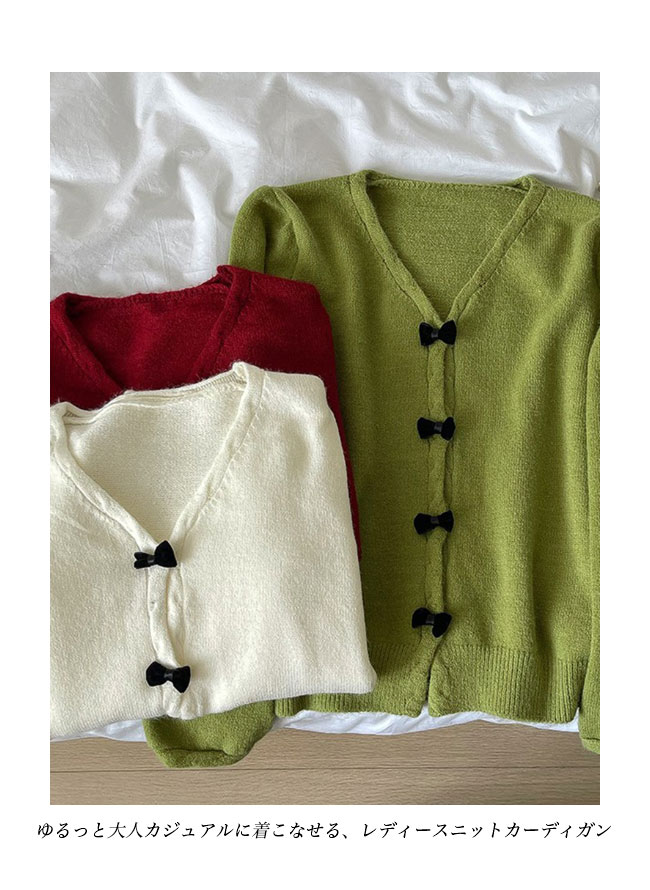 カーディガン Vネック レディース ニットカーディガン 蝶結びボタン ゆったり コーディガン ボタンカーディガン 春 秋 アウター ニット 前開き ボタン付き ニットコーディガン オフィス 通勤 ニットトップス 長袖 レッド グリーン ホワイト
