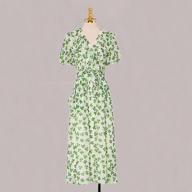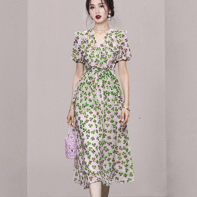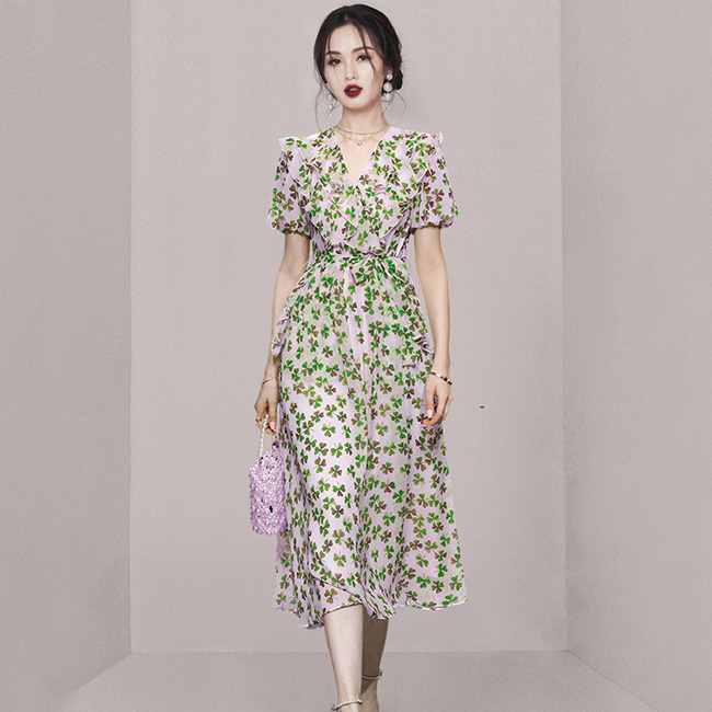ドレスキャバ。花柄。上品でエレな半袖ドレスです。デザインポイントはキュートなパフスブです。