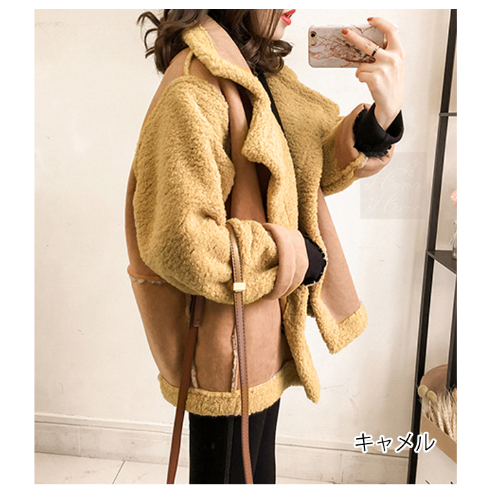 ムートンコート ムートンジャケット ムートン ライダースジャケット ボア フェイクファー レディース あすつく ゆったり 体型カバー 秋冬 送料無料