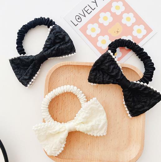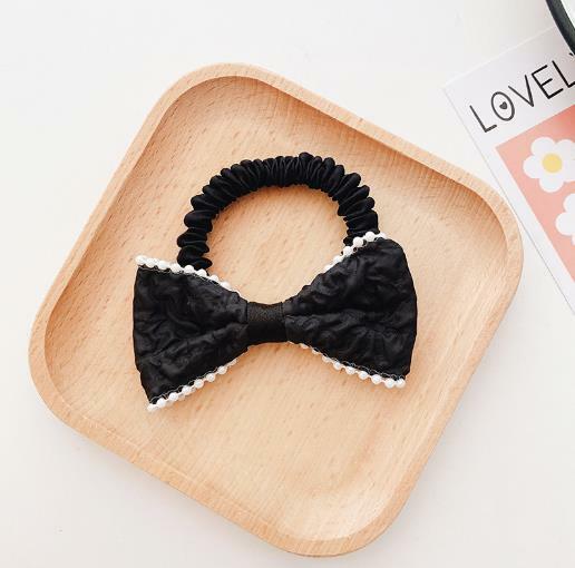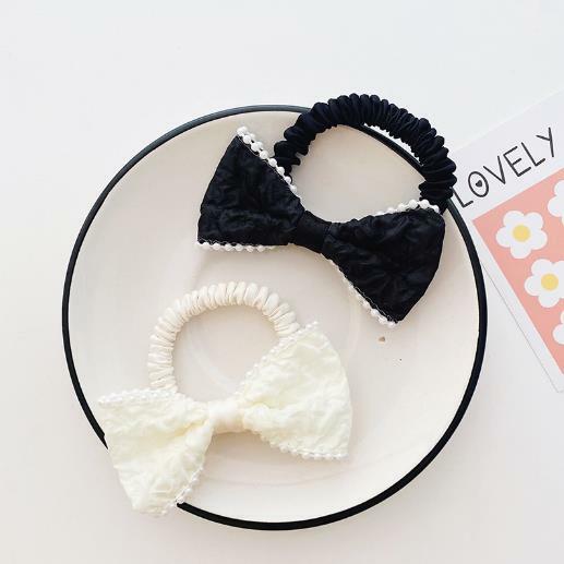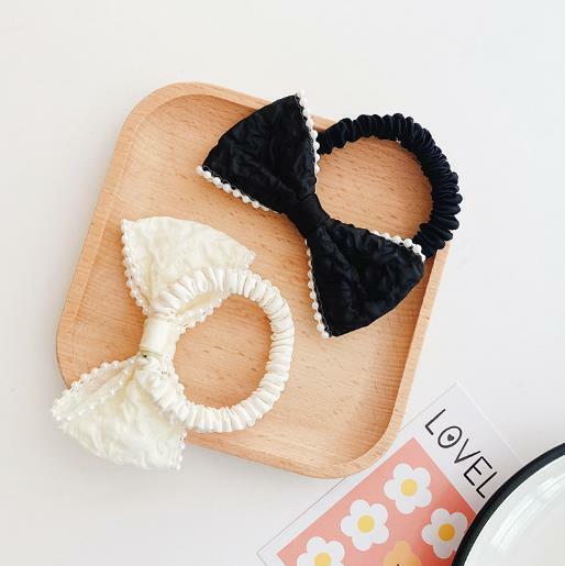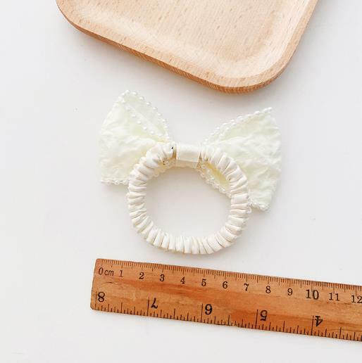 シュシュ ホワイトビーズパイピングリボンスリムシュシュ 新発売セール ヘアゴム