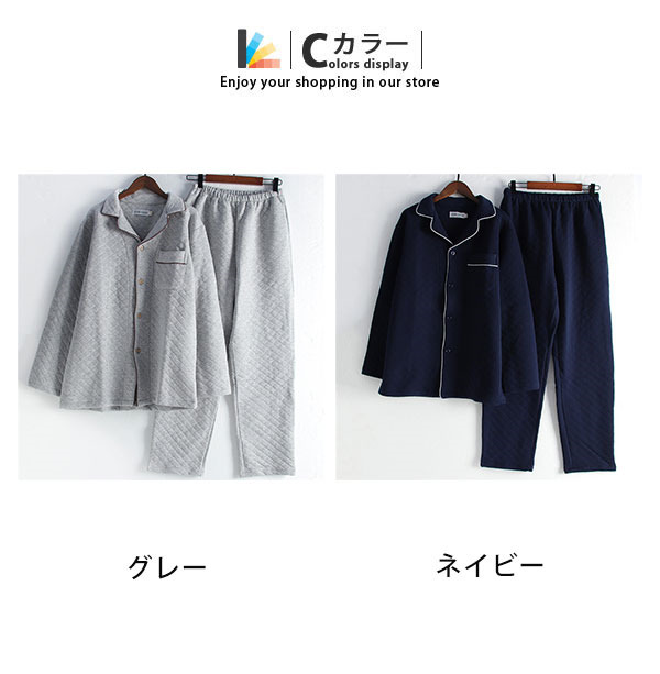 パジャマ メンズ キルトパジャマ 中綿 ルームウェア セットアップ 襟付き おしゃれ 寝間着 綿 上下セット部屋着 無地 前開き 秋冬