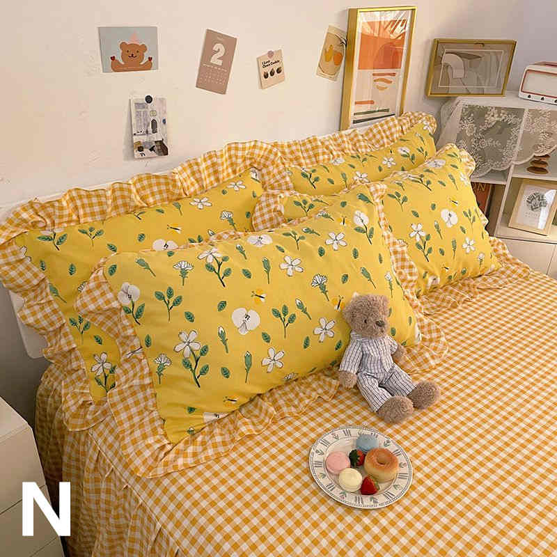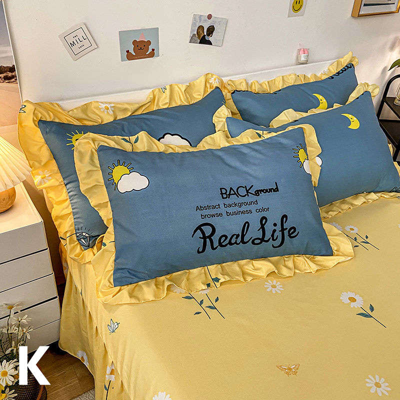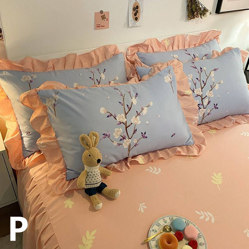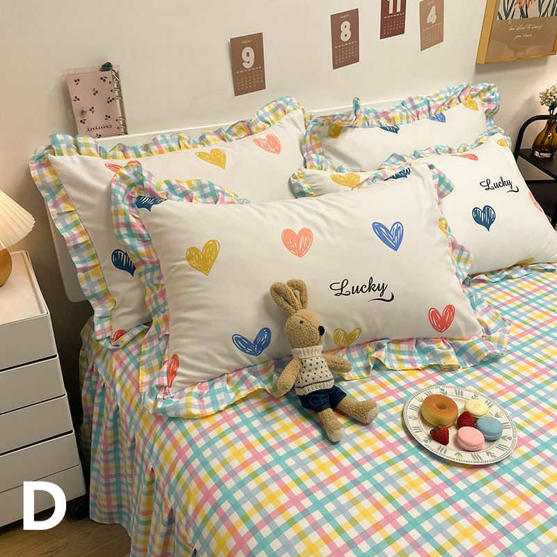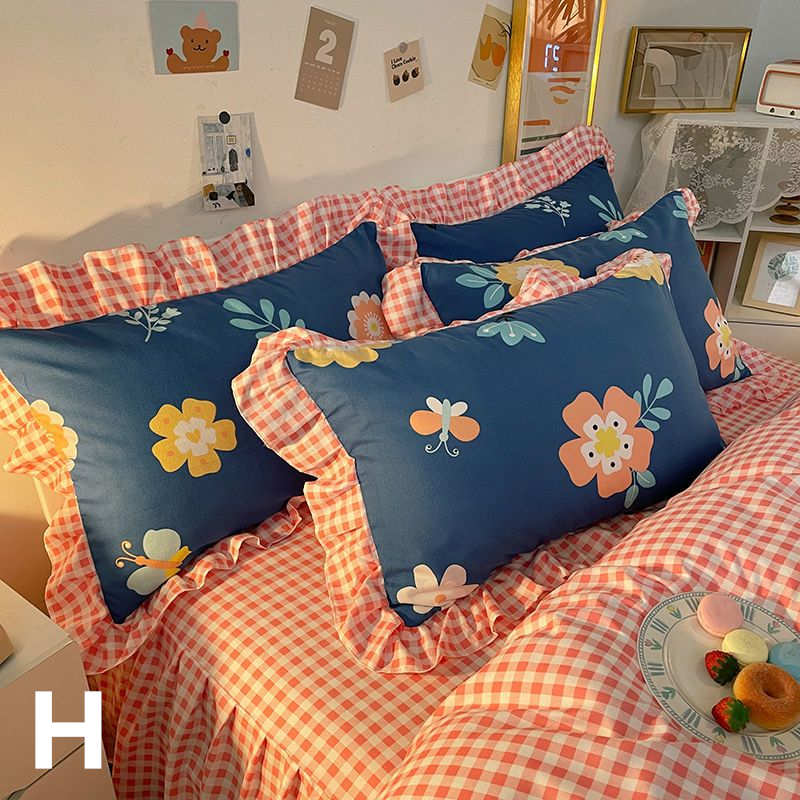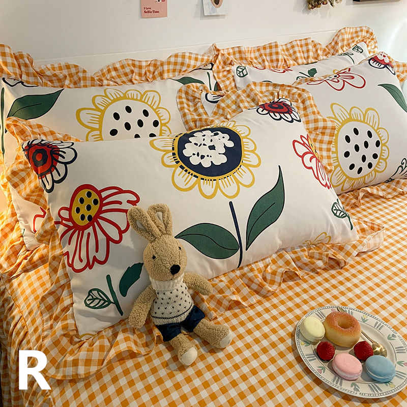 お取り寄せ商品 枕カバー 48CMX74CM 18COLORS 2枚セット まくらカバー かわいい柄 かわいいフリル 長方形 花柄 フリル付き ピローケース 洗える 抱き枕カバー