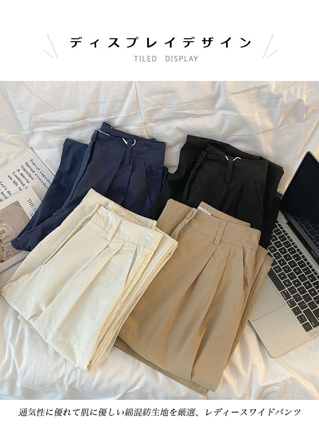 通気性に優れて肌に優しい綿混紡生地を厳選、レディースワイドパンツ