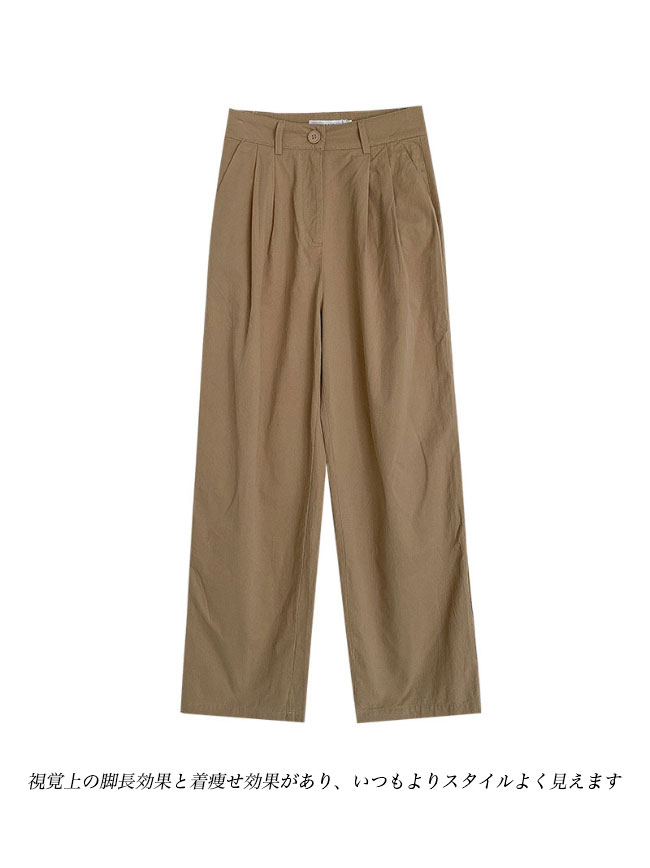 ワイドパンツ レディース ストレートパンツ タック入り チノパン 体型カバー ハイウエスト