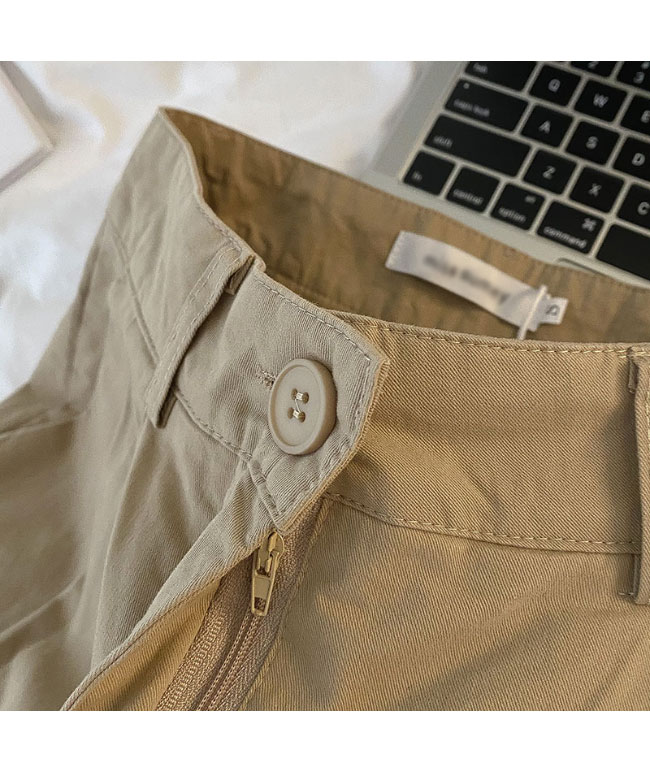 腰まわりのラインをすっきり見えさせ、タック入り縫製も嬉しいポイント