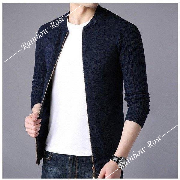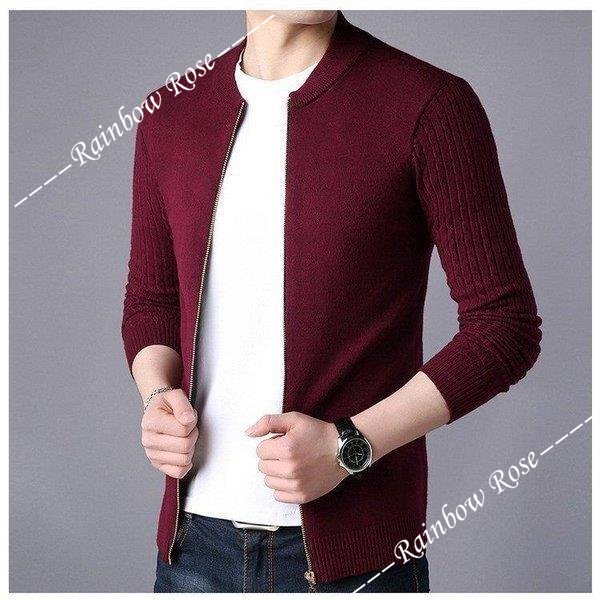 連携キーワード :ニット カーディガン メンズ 秋冬 長袖セーター トップス ジップジャケット 無地ニットジャケット スリム ニットソー ショート丈ニットアウター 通勤 ビジネス