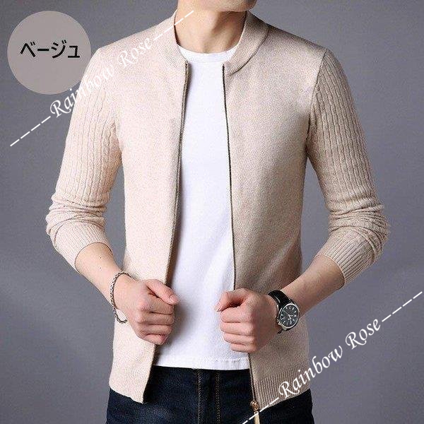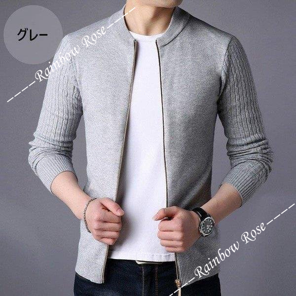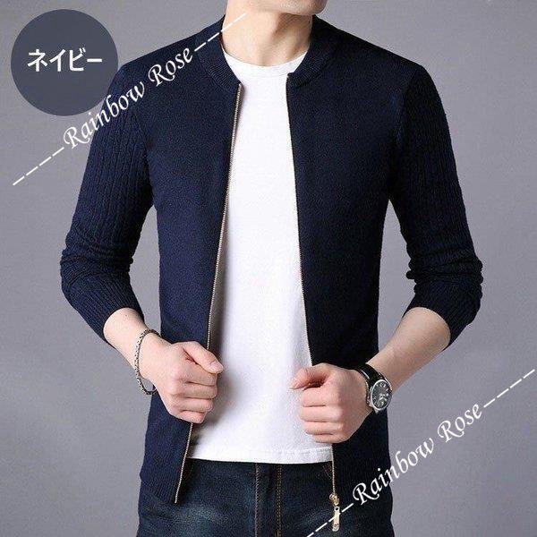ニット カーディガン メンズ 秋冬 長袖セーター トップス 無地ニットジャケット ジップジャケット ビジネス ニ