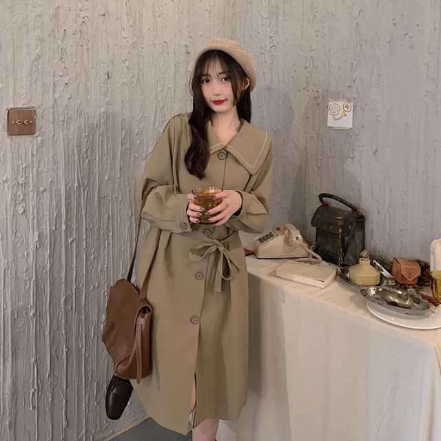 曲線を描いた襟とリボンタイがとってもキュートなトレンチコート♪