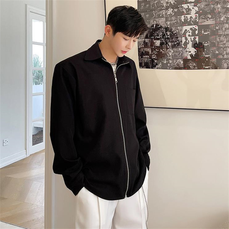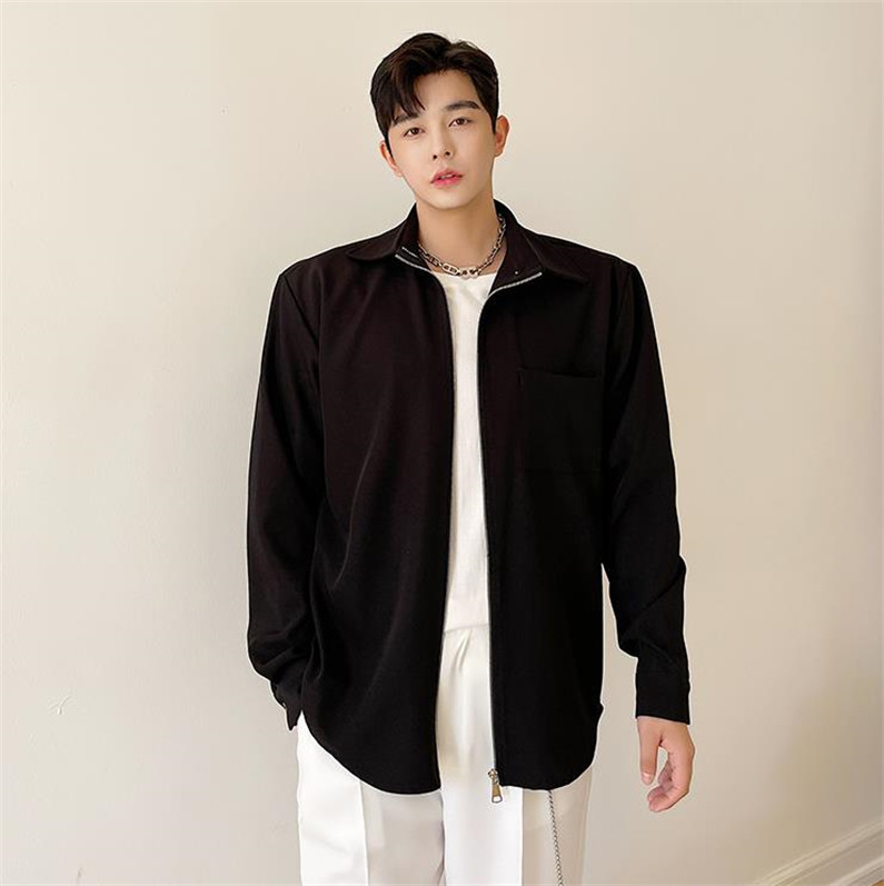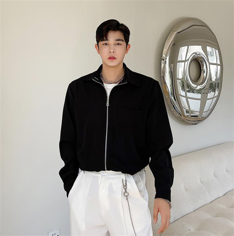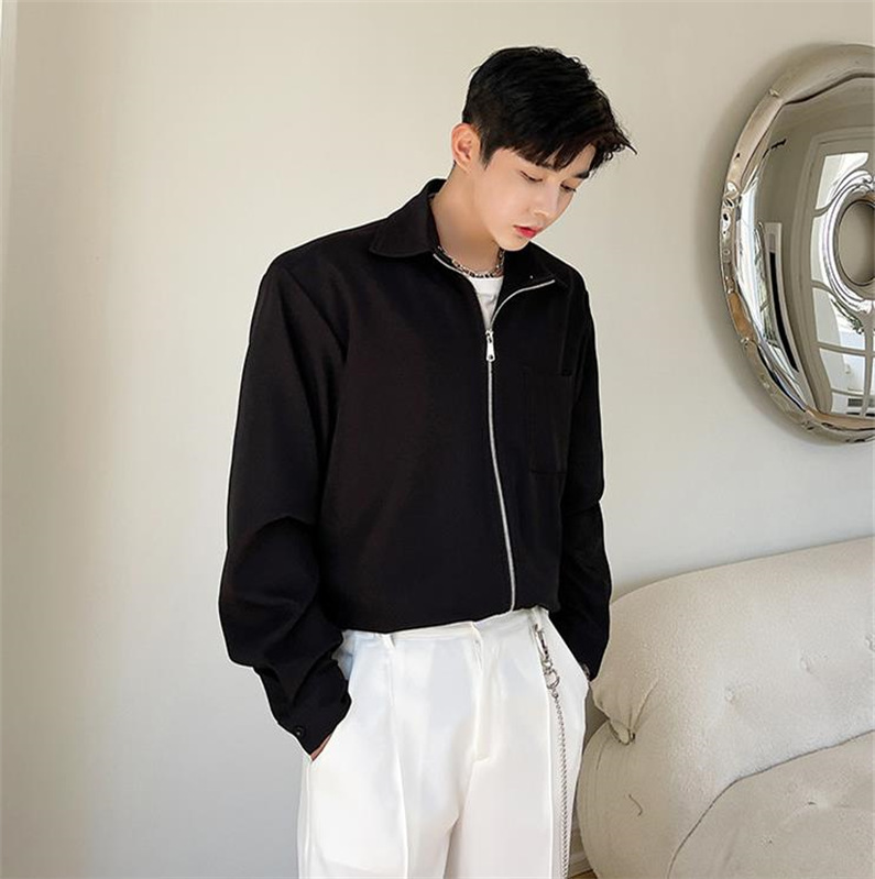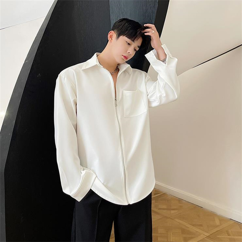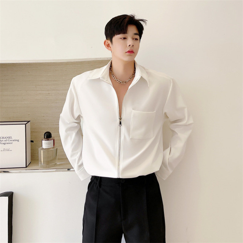 メンズ シャツ カジュアルシャツ 長袖 白黒 上着 ジップアップ 公演 男子トップス チャック 春秋 無地 ダンスウェア 発表会 アウター クラブ スタイリッシュ
