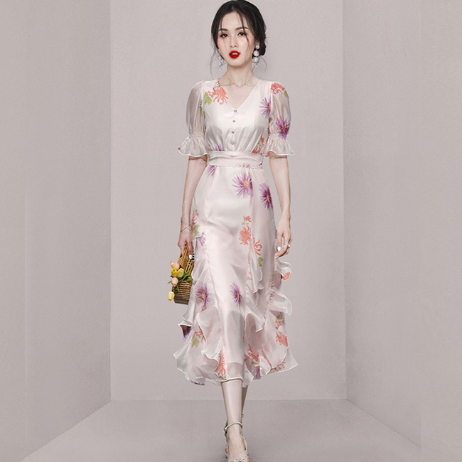 2022年秋新品発表 ドレスキャバワンピース。 キャバドレス 2次会 花柄 タイト 膝丈 ワンピース セクシーエレガンス ナイトキャバドレス ホステス クラブ 水商売 レディース 女性 セレブ 成人式 同窓会 飲み会 OLワンピース キャリアウーマンワンピース シフォン素材 プリーツ加工