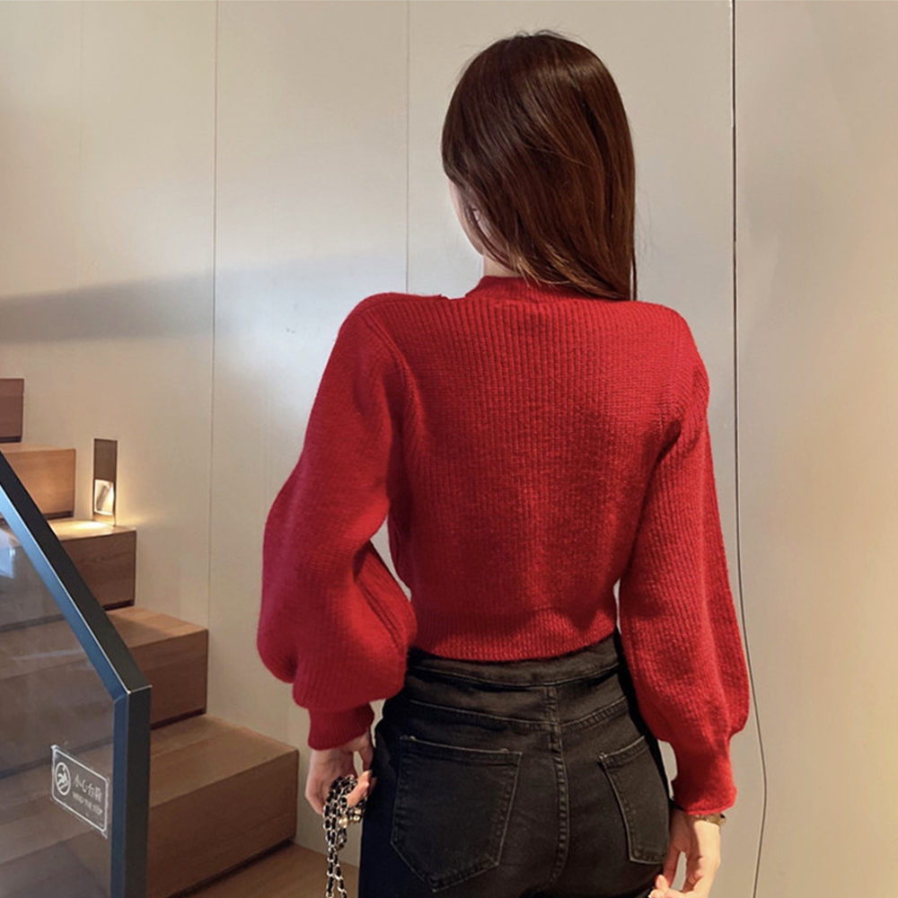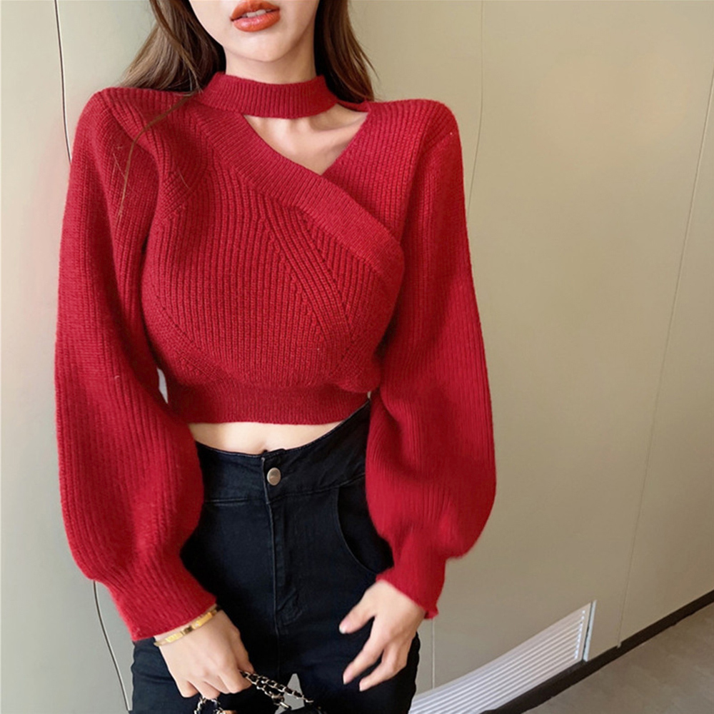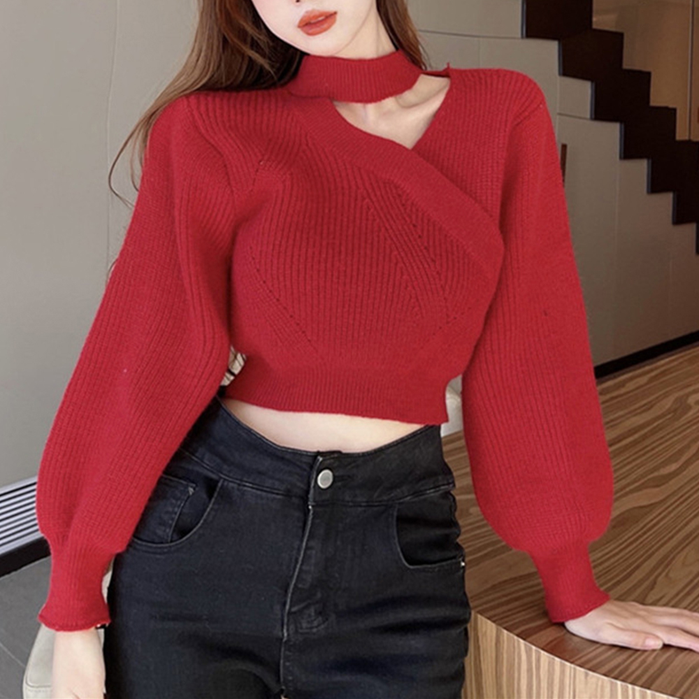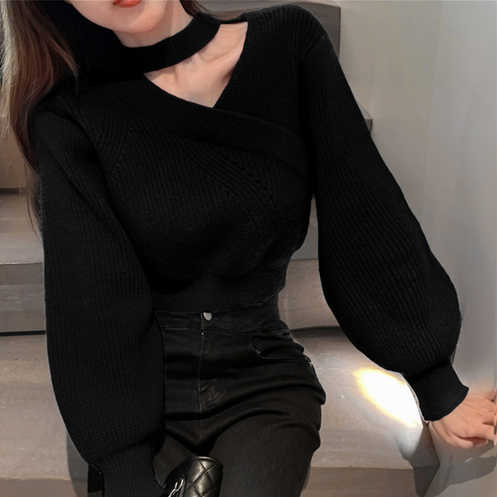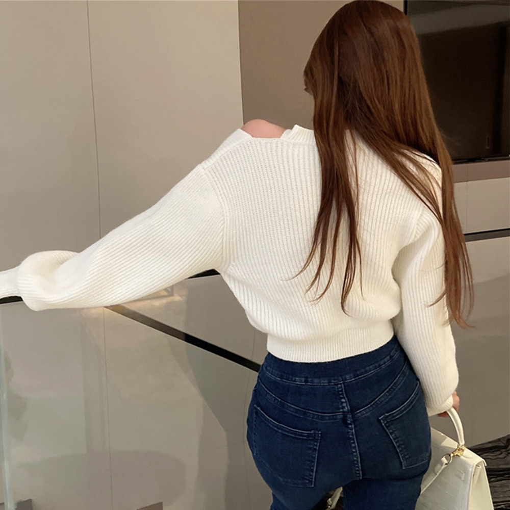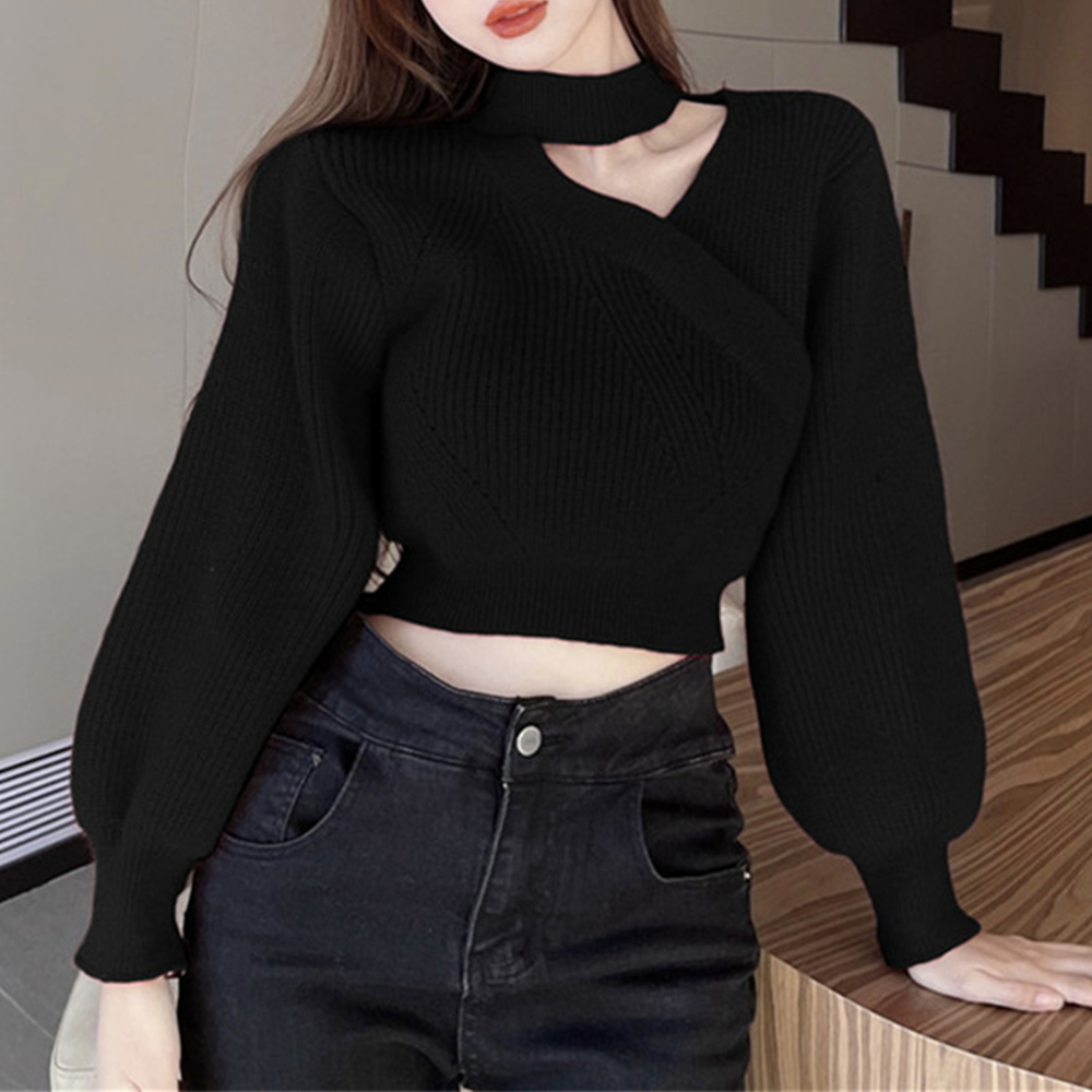 ショート丈 ニットトップスレディース秋冬