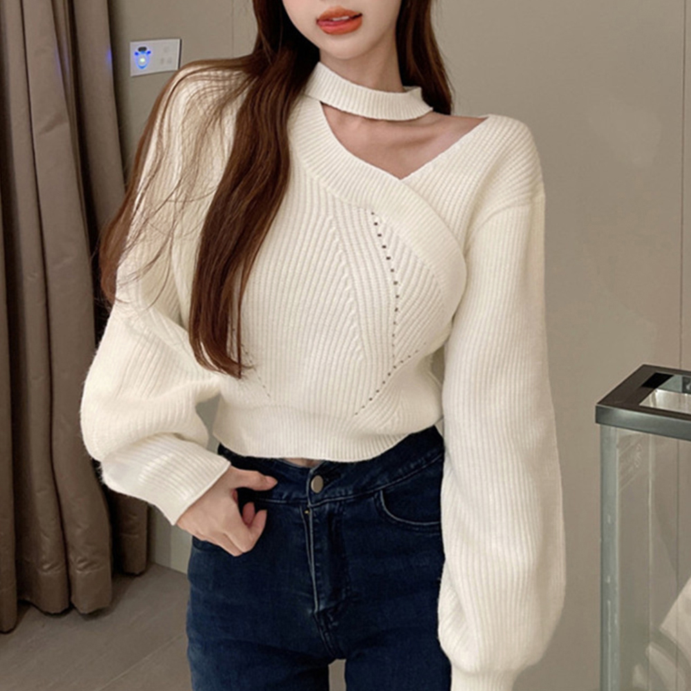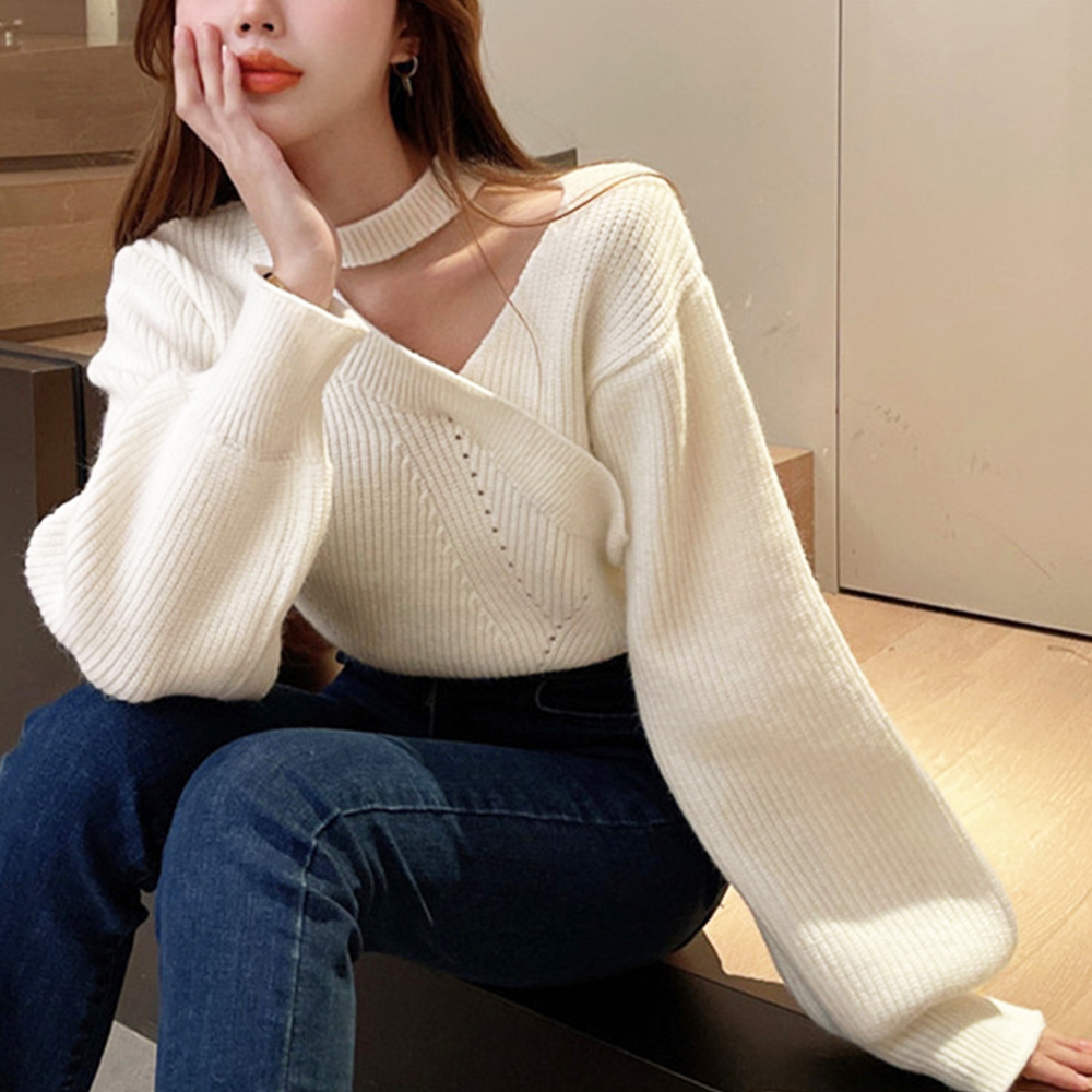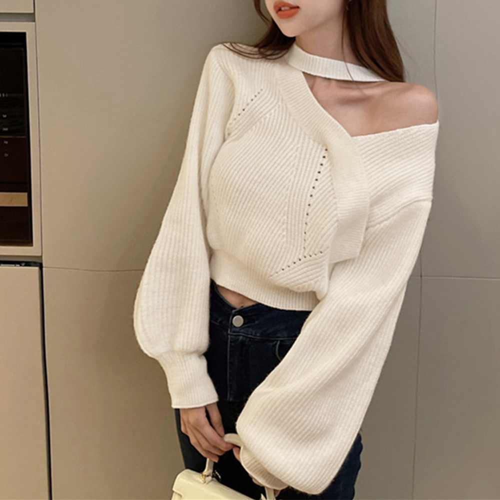 大人可愛い ニットソー長袖 セクシー リブニット オフショルダー 韓国ファッション 肩開きトップス ホルターネックニット