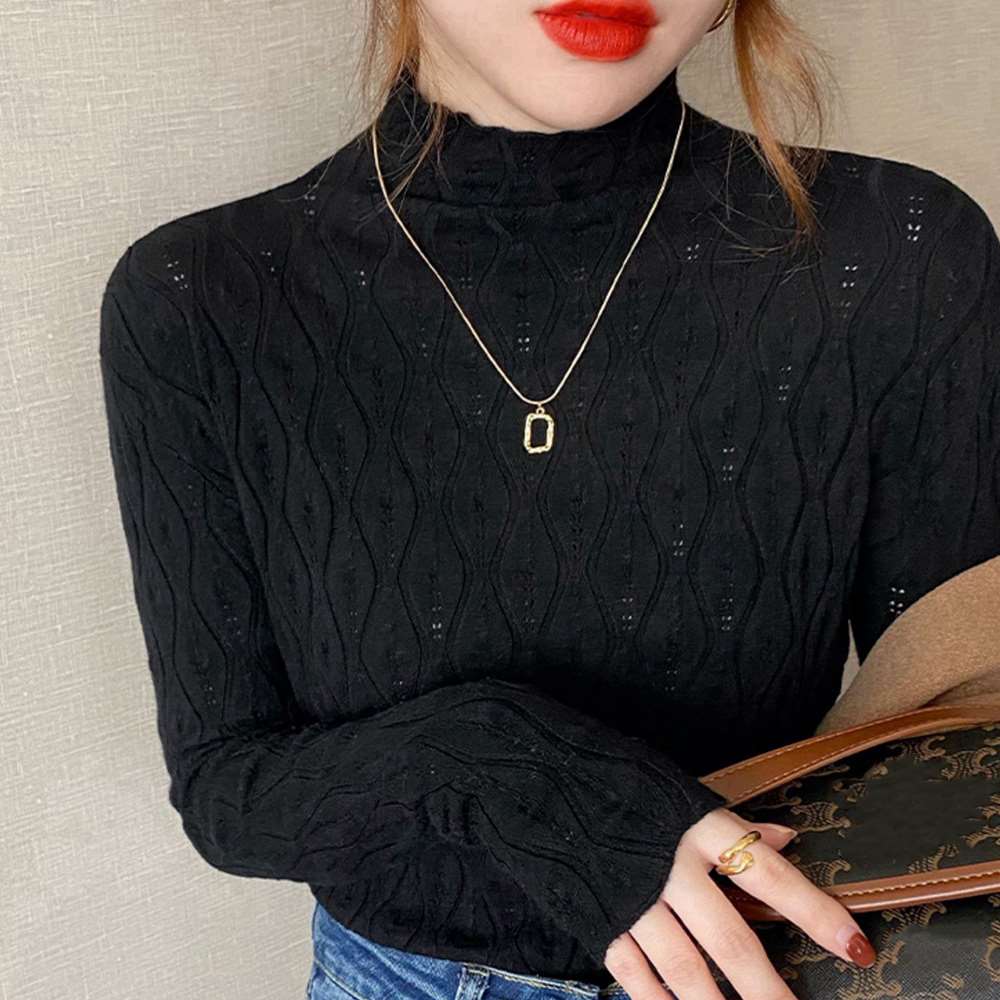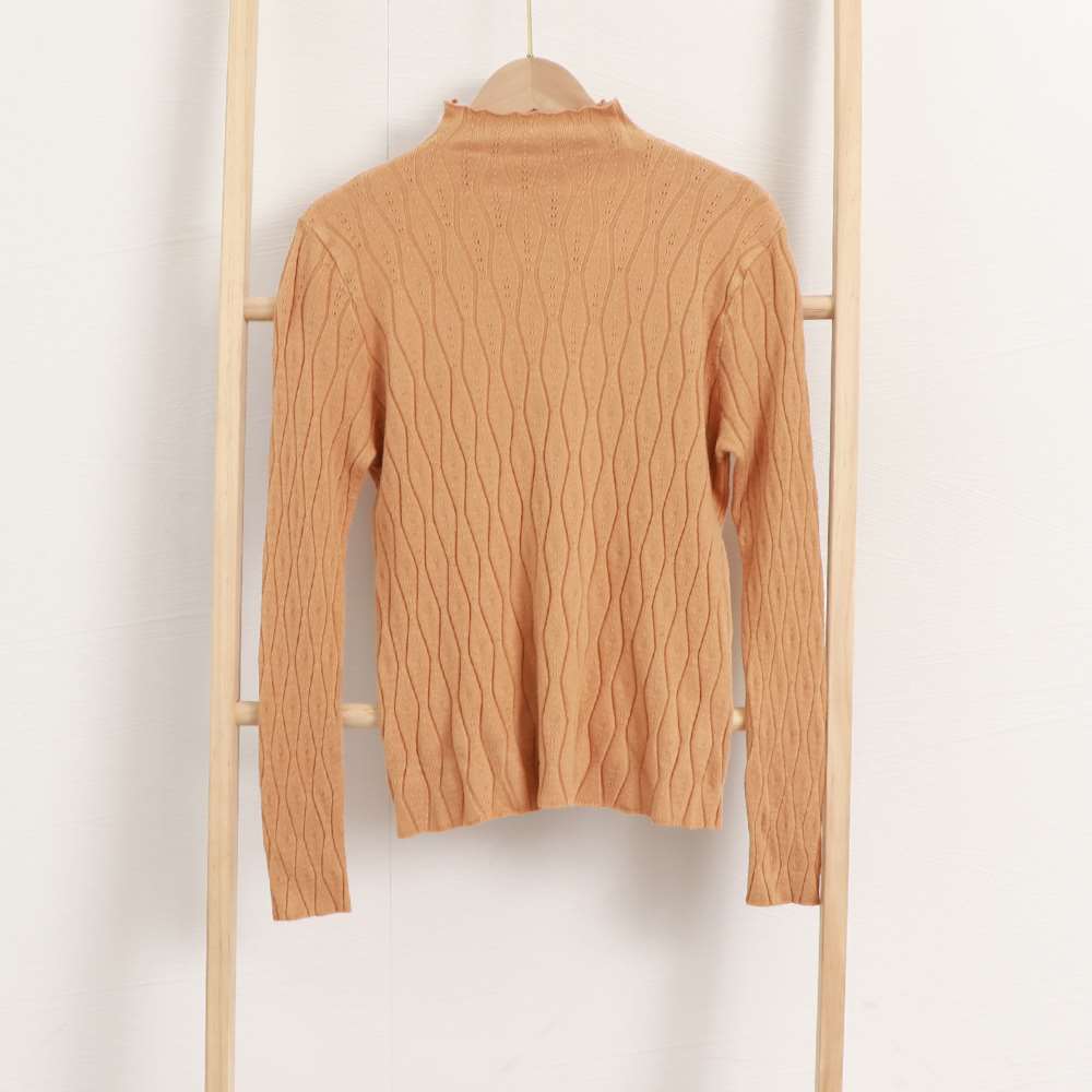ジャカード編みと波模様が存在感と放つプチハイネックニットトップス