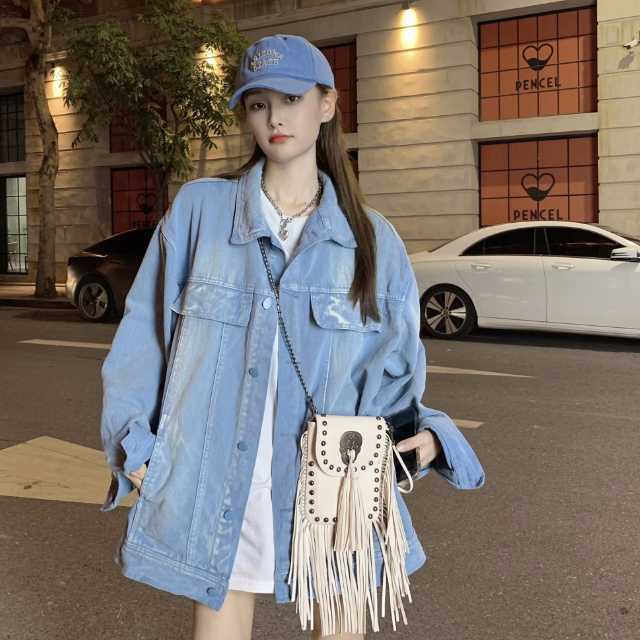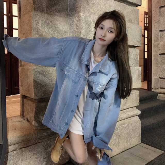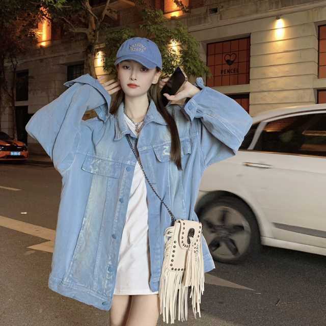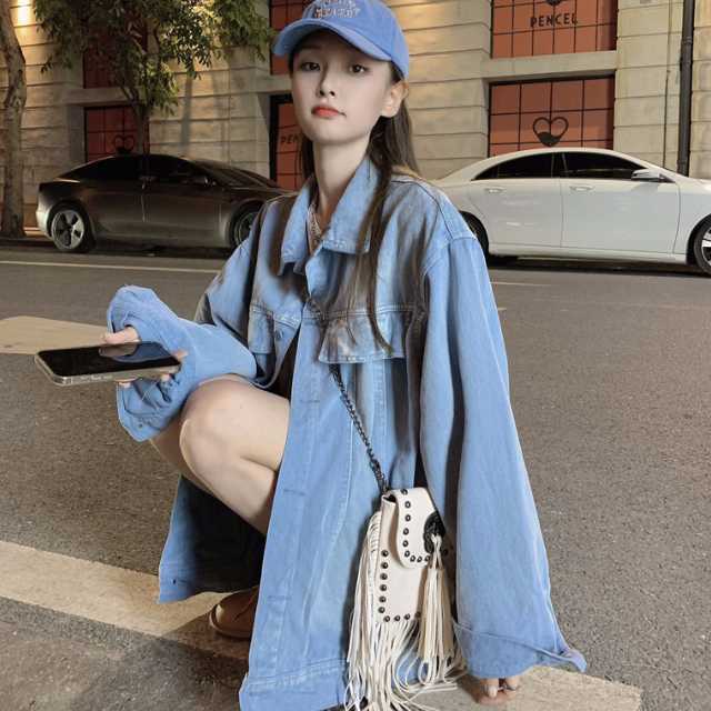 アウター デニム ジャケット デニムジャケット レディース ライトアウター 襟付き 長袖 オーバーサイズ キレセク ミディアムジャケット 羽織