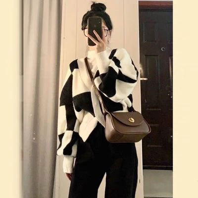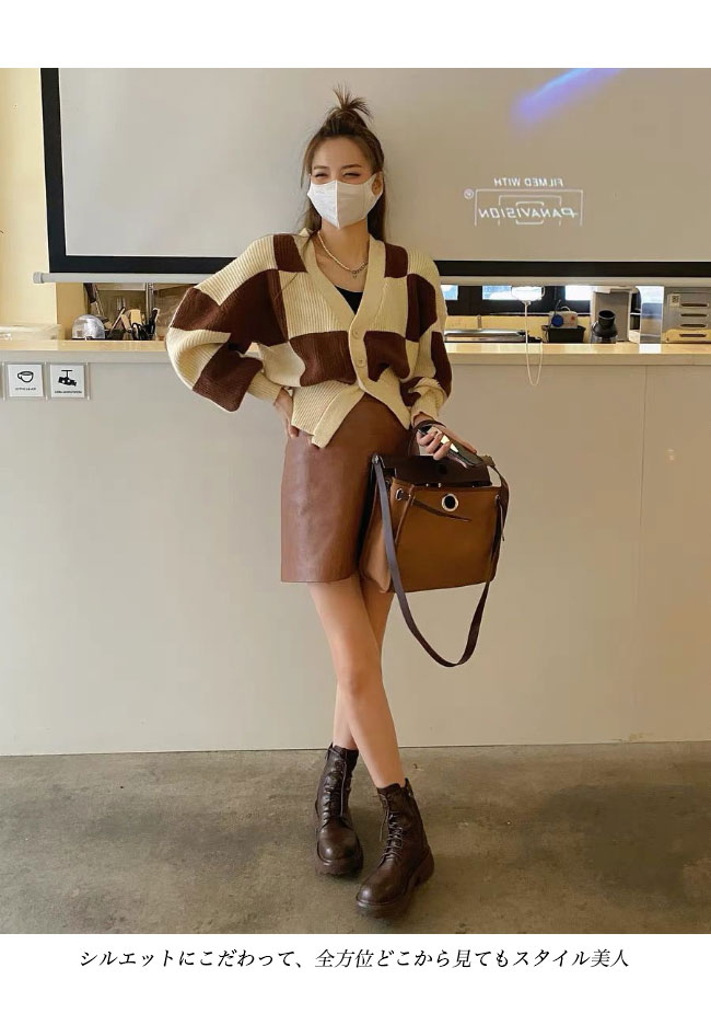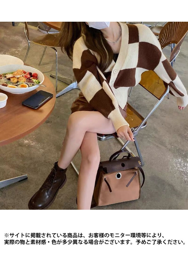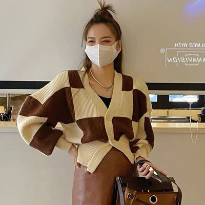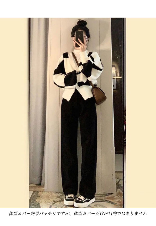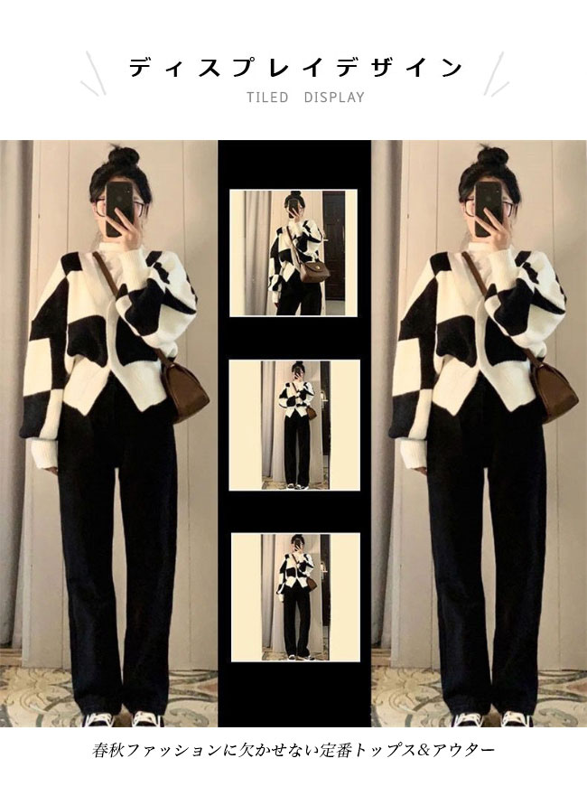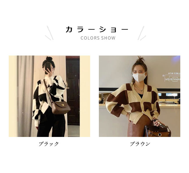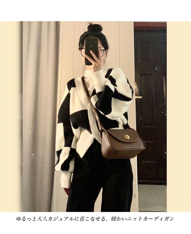 ショートカーディガン ニット カーディガン 厚手 レディース カーデ チェック柄 秋 ス ボタンカーディガン ショート レトロ ニットカーディガン ゆったり Vネック アウター 春 白黒チェック コーディガン 体型カバー お洒落 ニットコーディガン