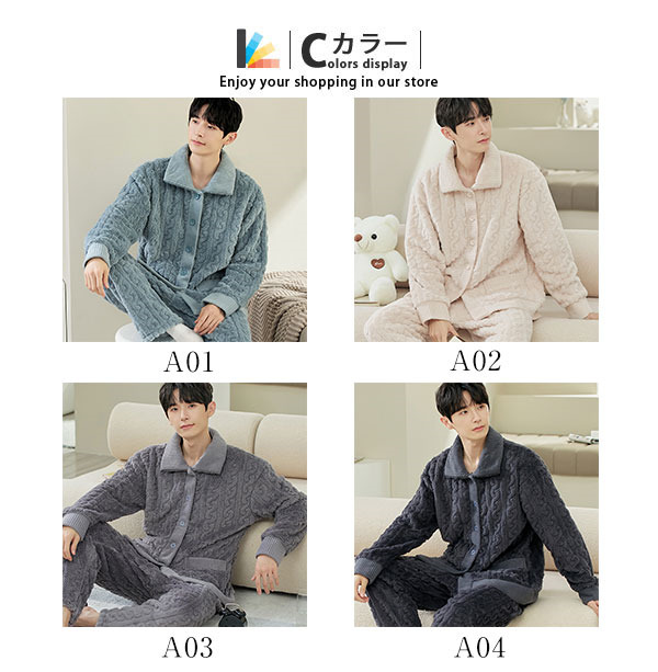 パジャマ メンズ 厚手 上下セット あったか ルームウェア 寝巻き 前開き 部