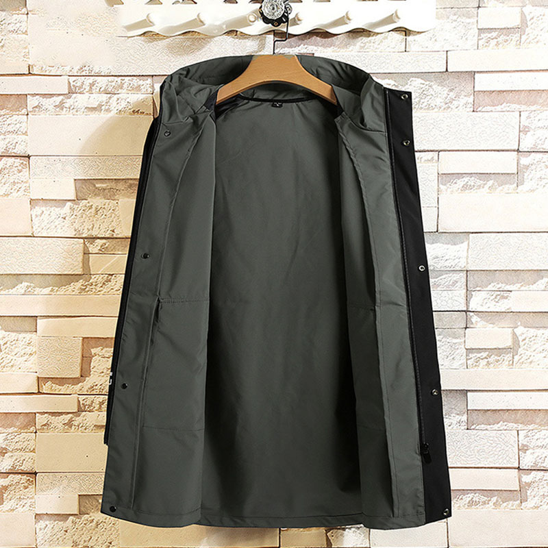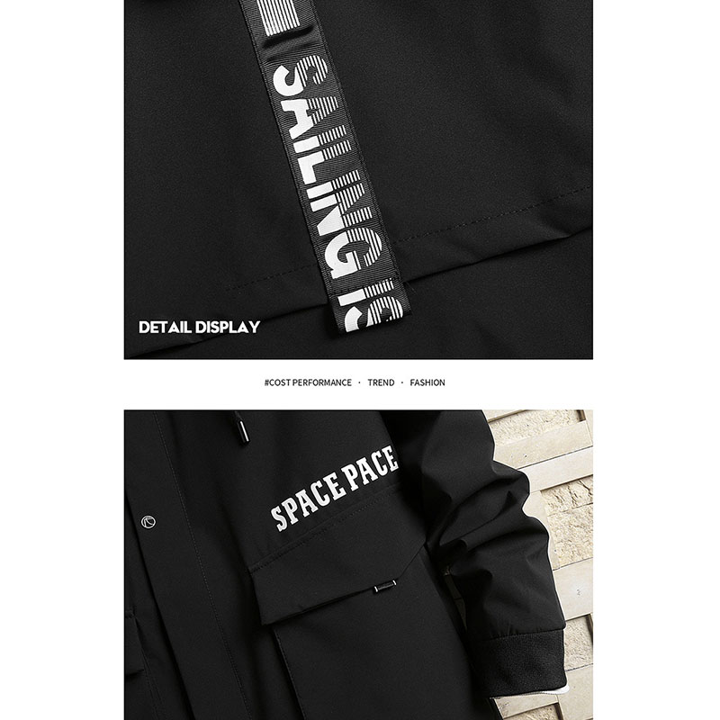 トレンチコート メンズ 春秋冬 ロング丈ジャケット アウターフード付き オシャレプリントライトアウター ジップアップ 通勤 ビジネスコートゆったり 通学